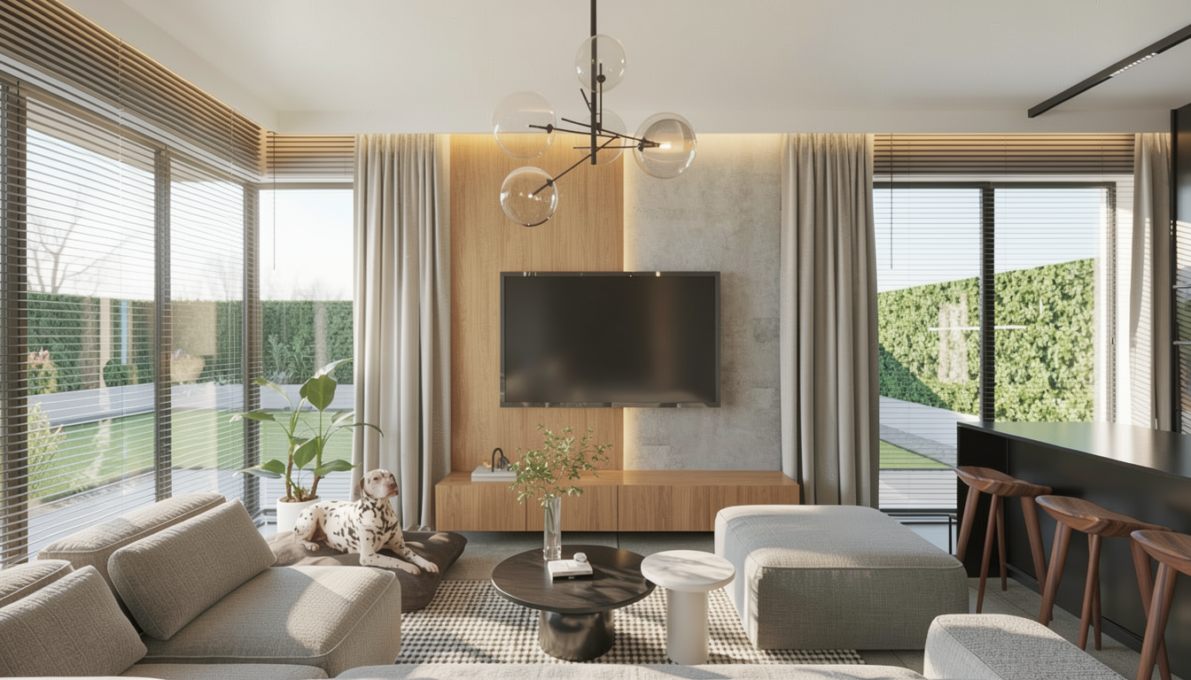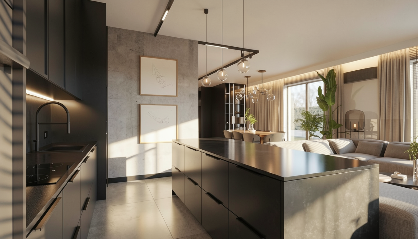 make glass cabinet double in width and all crystal wine glass storage make cabinetry in light oak and floors in herringbone matte walnut finish