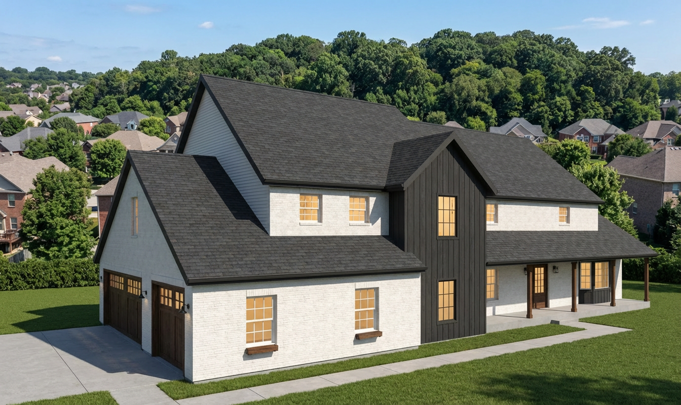 make the back porch have only 2 corner posts all other posts on the porch can be removed make the 2 corner posts a combination of brick at the base and then nice carpentry stained wood remove the wood door on the porch make black wrought iron railings for the sides of the porch create a step down to the lawn from the porch
