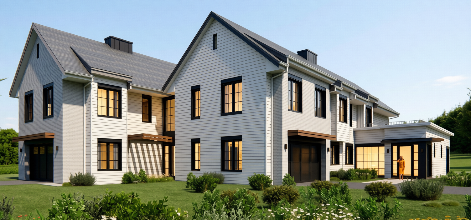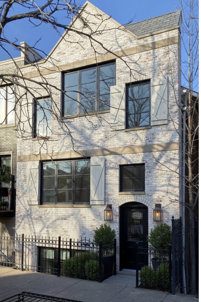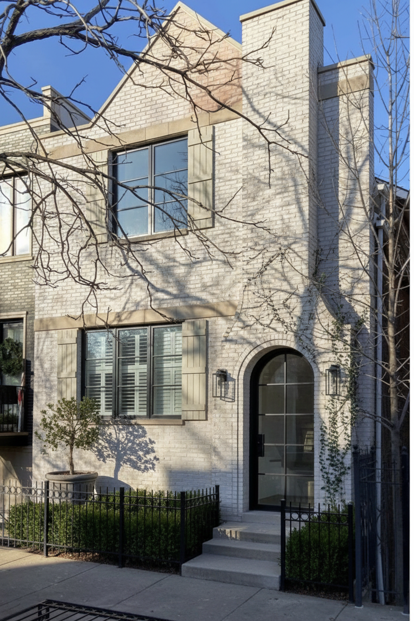 exterior shot render with white brick