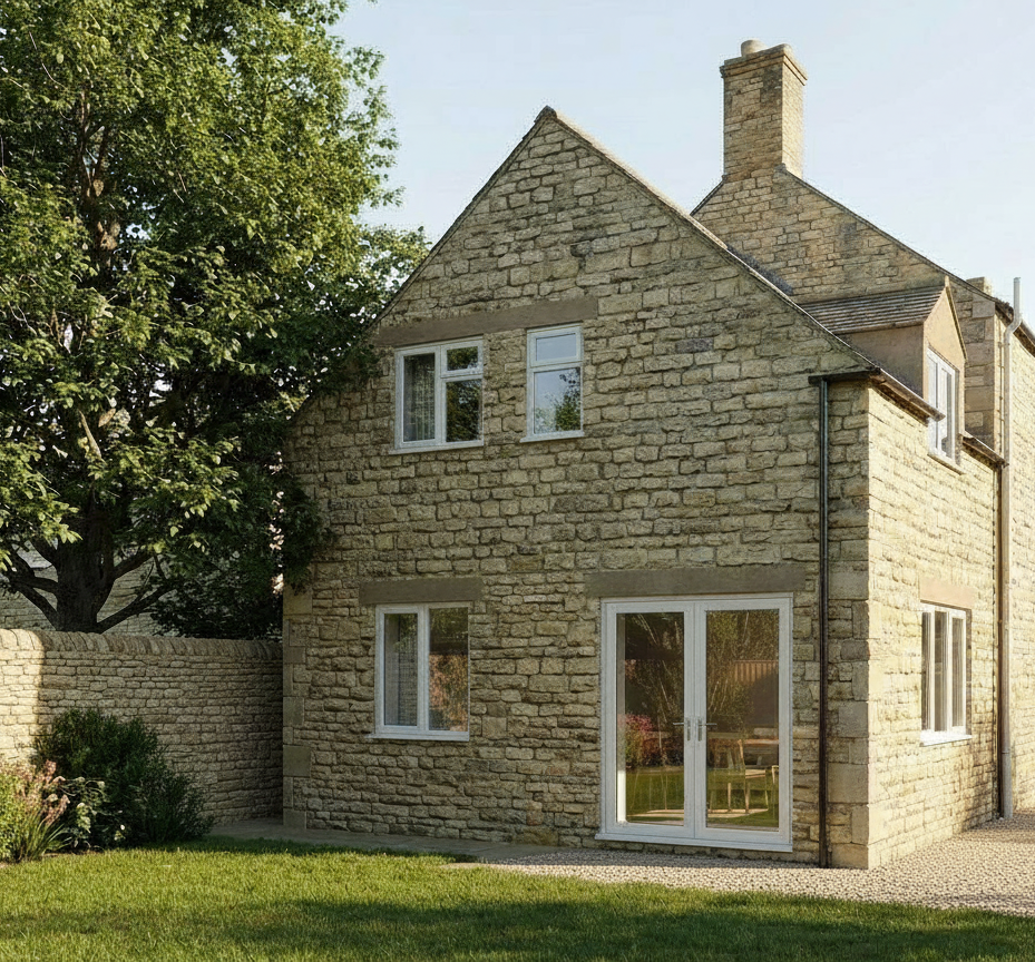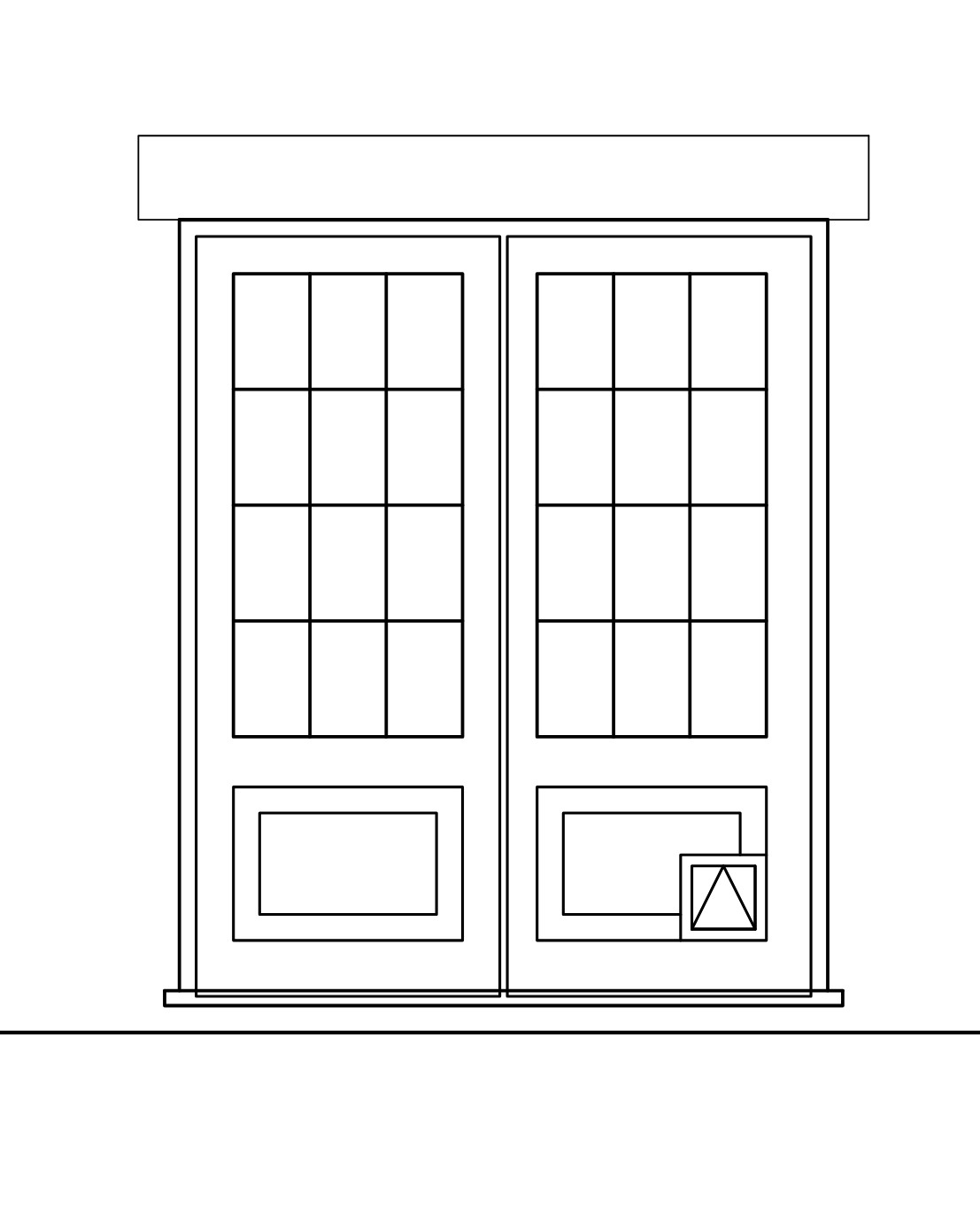 exterior shot change the style of the french doors to like the moodboard keeping everything else exactly the same as the source image