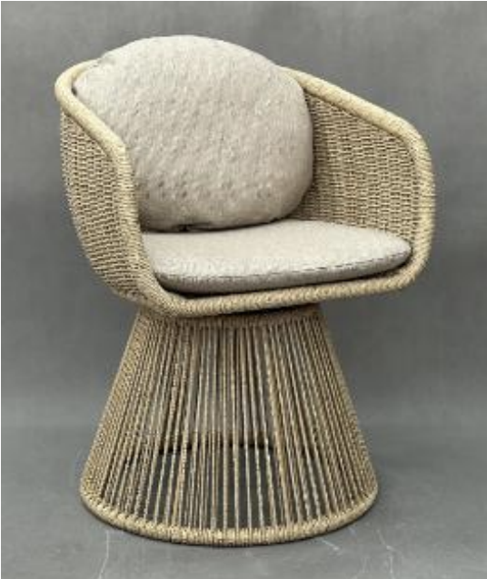 generate a product shot of this chair with completely white background and floor no shadows put the chair in the same position as the reference image