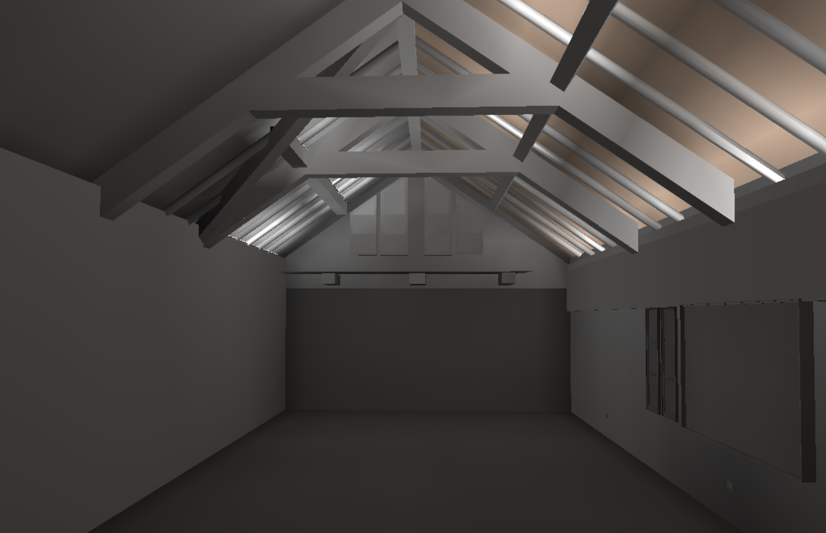 render the far back wall as a large window looking out to maine islands the ceiling should be wood with uplight at the beams add a dining table on the right
