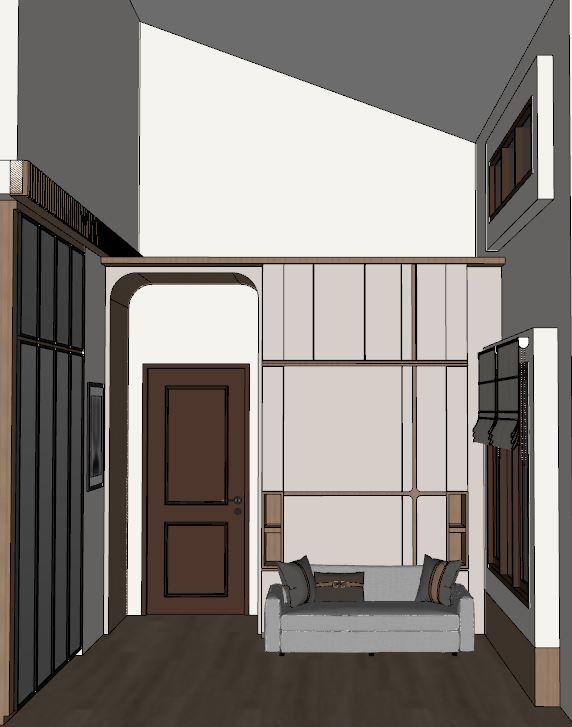 create ultra realistic images without changing any structure shape design or materials do not resize jpegs add indirect light to every shelves use mirror with black stainless frame for the wardrobe left part and add ceiling lights also add outdoor light from the window and use soft wood texture for the floor do not change color size and shape