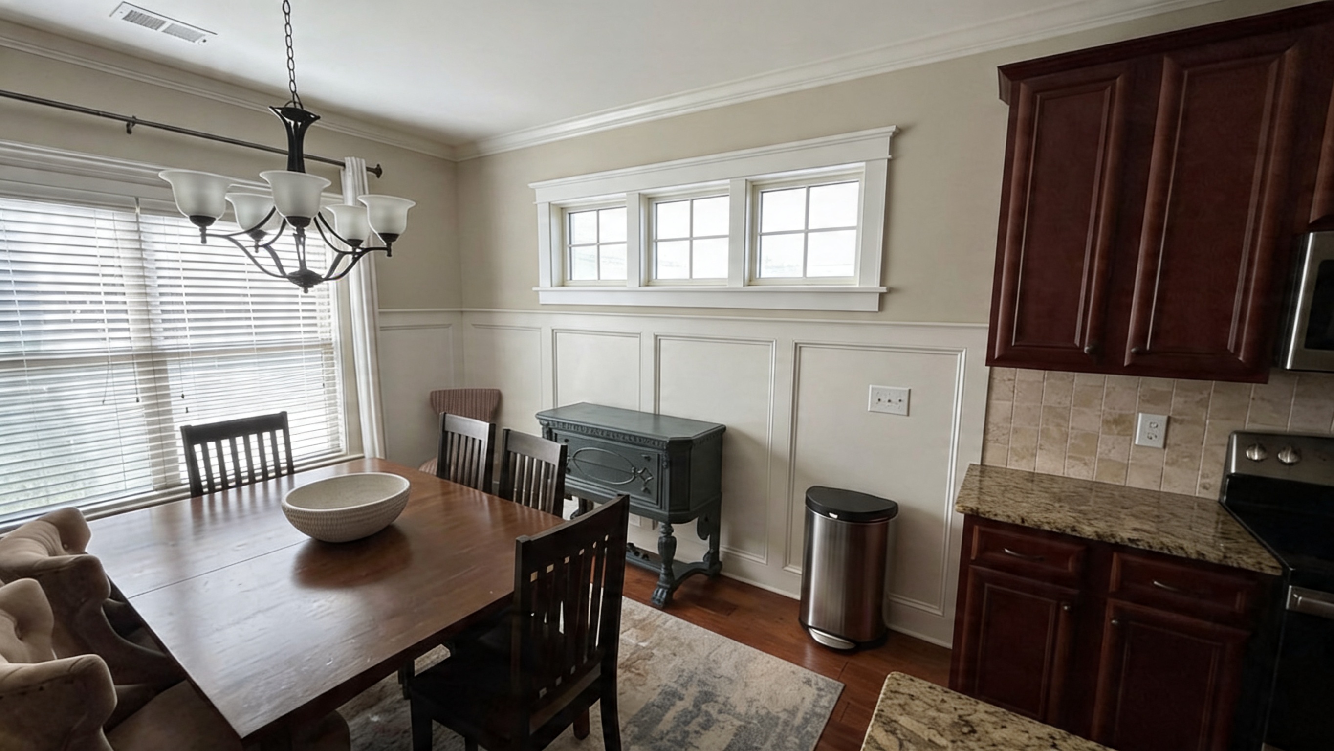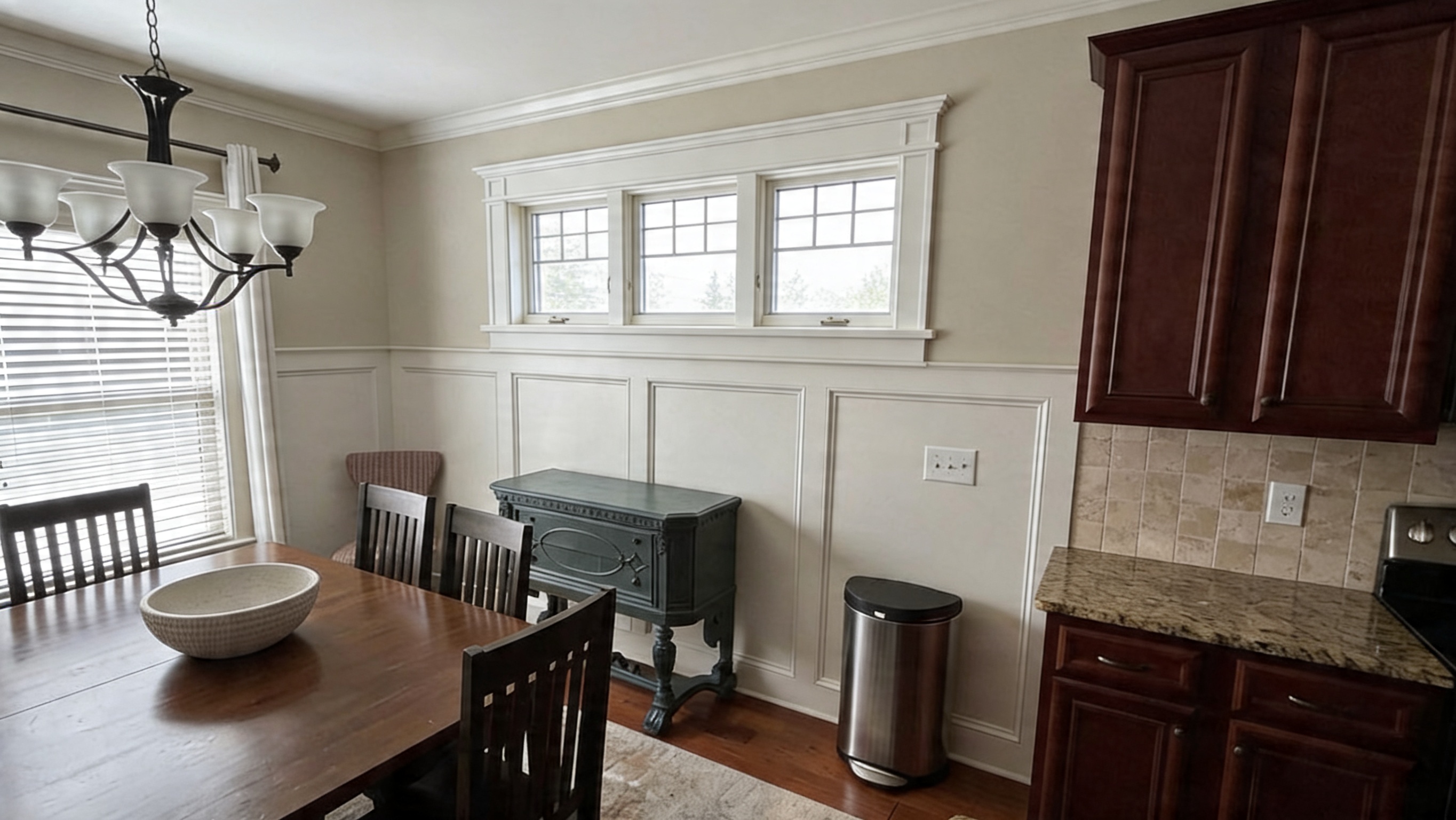 render this interior shot adding a 3 gang fixed window without grilles as indicated by the sketch use the same white colored craftsman trim as the other windows