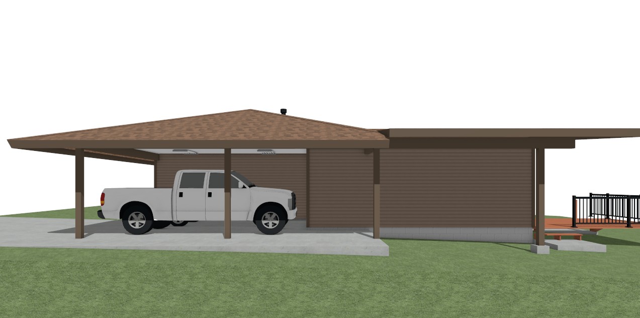 chan you change the siding on this house to board and bat in a sherwin williams charcoal gray add wooden slate fencing as a privacy fencing at the carport area add concrete block under the deck so it isn t floating