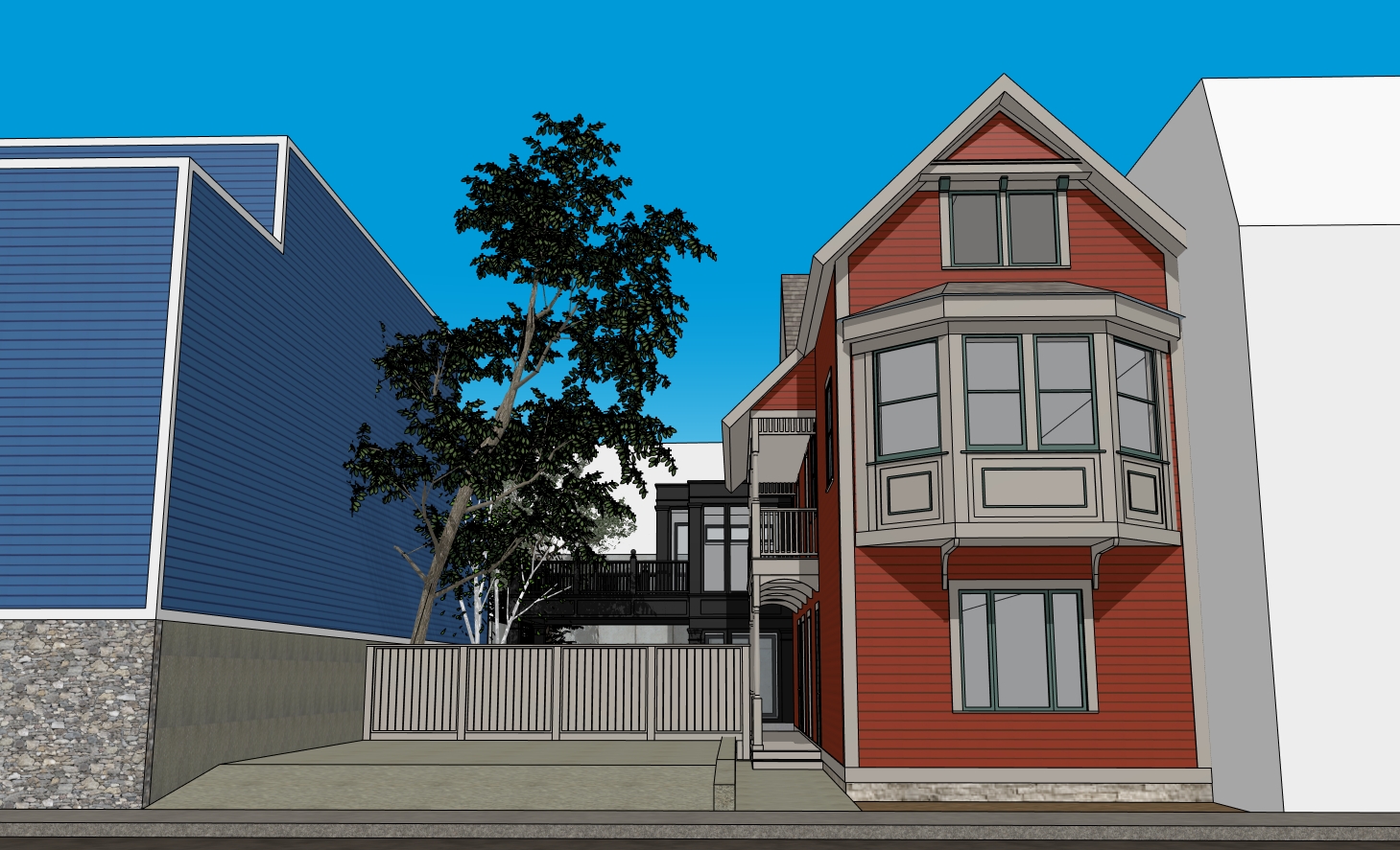 use the uploaded sketchup model as the base maintain all existing geometry proportions colors and textures exactly as they are do not modify the design materials or layout render a photorealistic residential exterior scene at golden hour with warm sunlight long soft shadows and a bright clear sky add realistic vehicles parked in the driveway modern sedans suvs neutral colors clean and well scaled add people walking naturally on the sidewalk in front of the house casual clothing relaxed movement natural poses lighting warm directional sunlight from a low angle subtle glow on edges balanced exposure camera eye level slightly angled perspective showing the full facade driveway and sidewalk style high end architectural photography ultra detailed crisp professional visualization output ultra high resolution sharp focus natural color grading