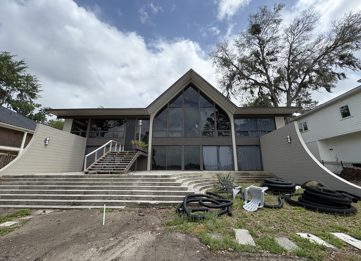 can you remove the swooped wing walls on both sides of the house