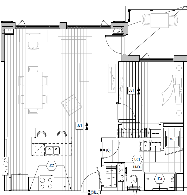 transform this 2d architectural floor plan into a realistic rendered 2d plan with high quality materials textures and fully finished furniture critical instructions strictly follow keep the exact original floor plan do not modify walls room sizes proportions or layout do not move remove or add architectural elements do not redesign the space flooring use amber classic oak 4087 by polyflor 5 wide plank bathroom floors use this 12x24 tile naos blanco mat by centura countertops use misty carrera by msi surfaces closet shelving use white laminate colour walls oyster white sw7637 by sherwin williams furniture should be warm cozy neutral tones showers glass sliding doors with white shower base ignore and remove all text callouts arrows labels etc