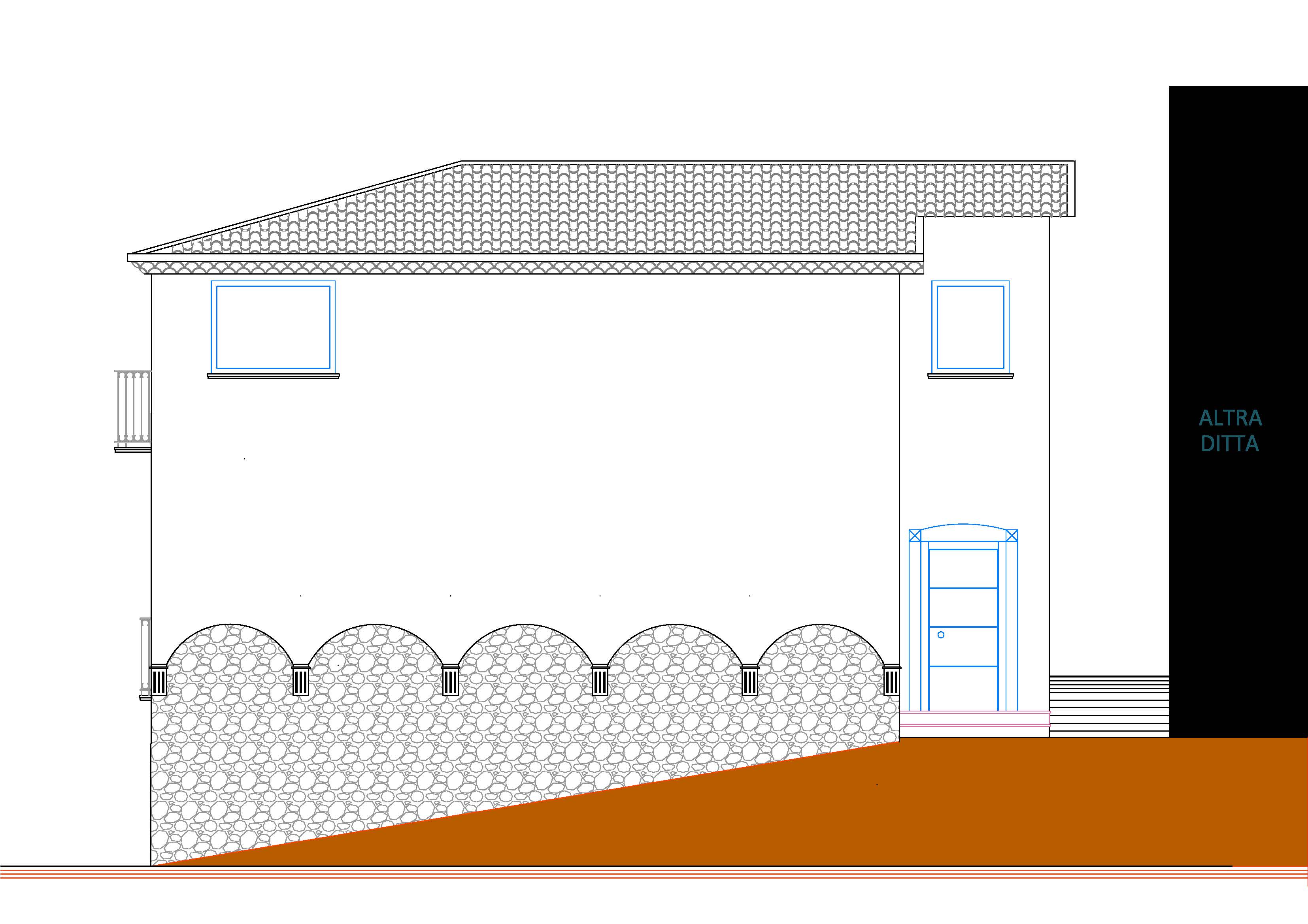 convert this floor plan into a realistic isometric 3d view of a full house show the space from an elevated angle with furniture walls and details visible rivesti anche il contorno solo degli archi in pietra e elimina tutto il verde inserisci il fabbricato in un contesto urbano gli infissi ed il portone fammeli di colore ardesia elimina i gradini e le ringhiera al piano terra use the same furniture as shows on the plan do not change the orientation of the floorplan