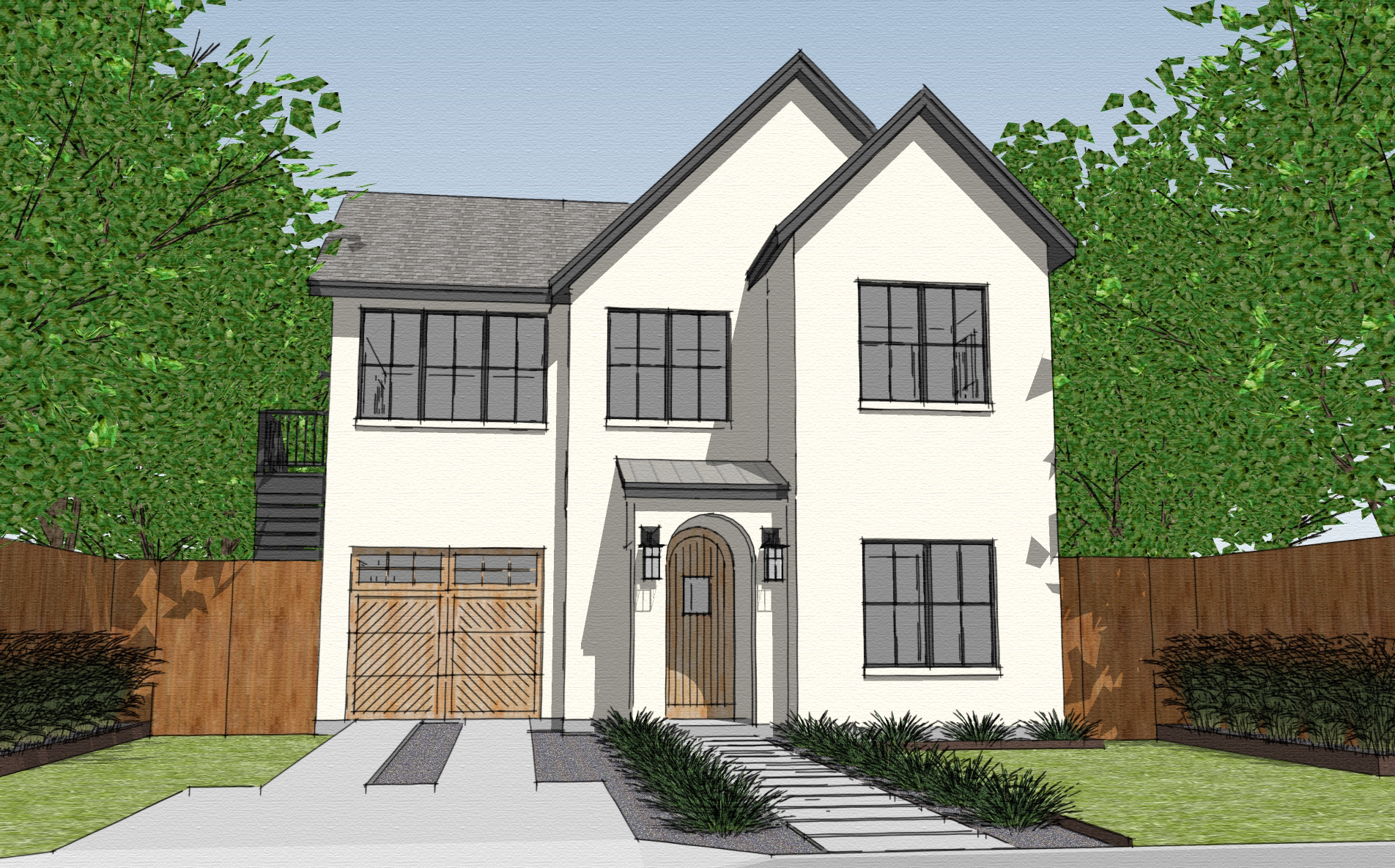 turn this image into a presentation quality rendering have sun strike the face of the building with minimal shadows on the yard