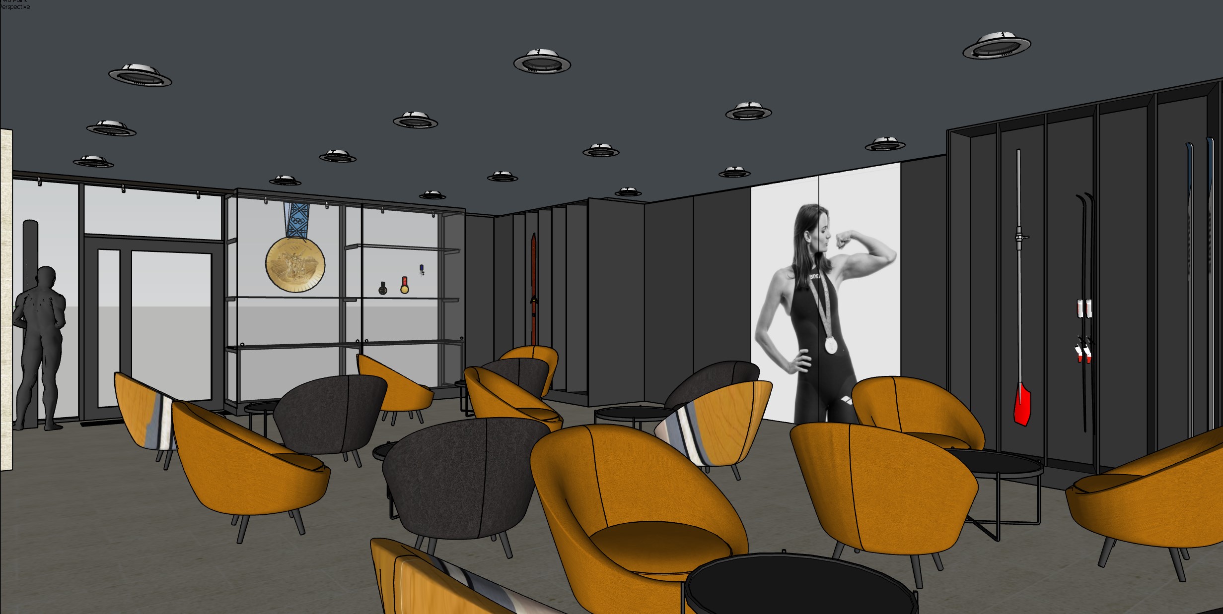 ceiilng light s in white behind the vitrine is also glass and outdoor light