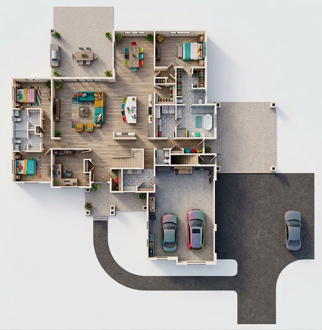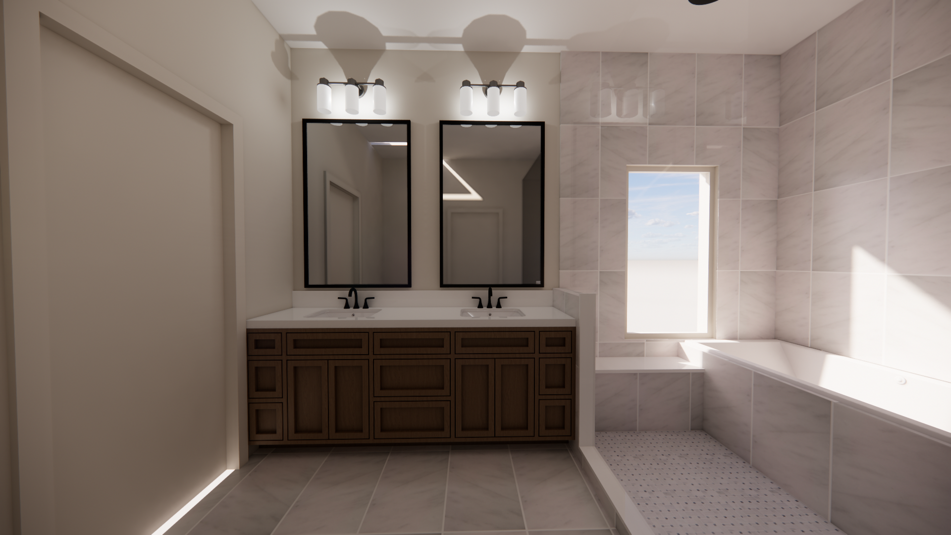 create a high end residential bathroom rendering maintain the exact layout proportions and all architectural elements as provided do not modify the design materials finishes walls painted in sherwin williams origami white with a smooth matte finish flooring and shower walls in 12x24 carrara marble tile soft white with subtle gray veining laid in a clean modern pattern grout lines tight and minimal for a refined look matte black plumbing fixtures throughout faucets shower trim hardware modern and minimal in design tub shower condition the bathtub is a drop in tub located within the shower enclosure tub deck is flush and clean lined tub front clad in matching carrara marble for a seamless integrated look maintain a monolithic appearance with continuous stone detailing all shower fixtures shown are existing and must remain exactly as is lighting soft natural daylight entering from one side warm diffused ambient lighting with no harsh shadows subtle realistic reflections on fixtures and tile style atmosphere bright clean and minimal aesthetic slightly warm tone to balance the white palette realism enhancements the image should appear as a highly realistic real estate photograph natural camera perspective with correct lens proportions no distortion balanced exposure similar to professional interior photography soft natural light falloff with realistic shadow gradients accurate material representation with true to life textures and reflectivity strict constraints do not change layout materials or color palette do not add any new fixtures accessories decor or styling elements do not add towels rugs trays bottles artwork or countertop items do not add or modify any shower components use only what is already shown do not modify or reinterpret the design in any way only enhance realism and clarity of the existing image