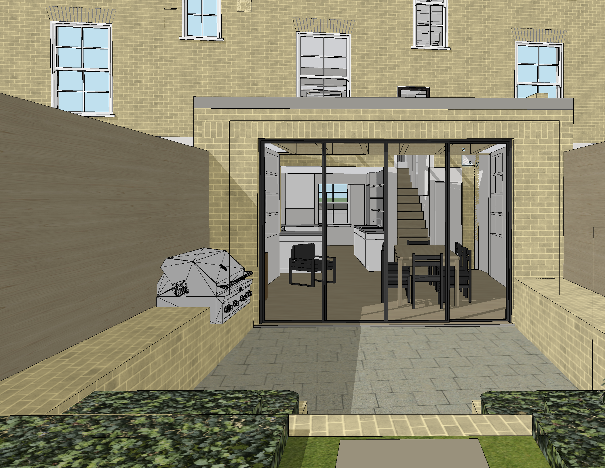 2 people inside planting at each side where it is green