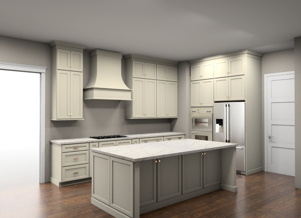 traditional kitchen with cream cabinets taj mahal countertops oak flooring and zellige backsplash tile add room baseboard and crown molding magazine look image