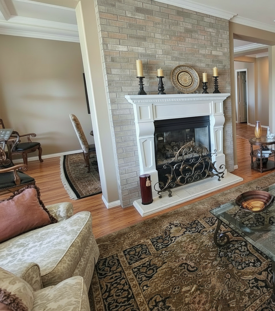 add wall panel columns around doorway openings do not crop image maintain same colors textures furniture