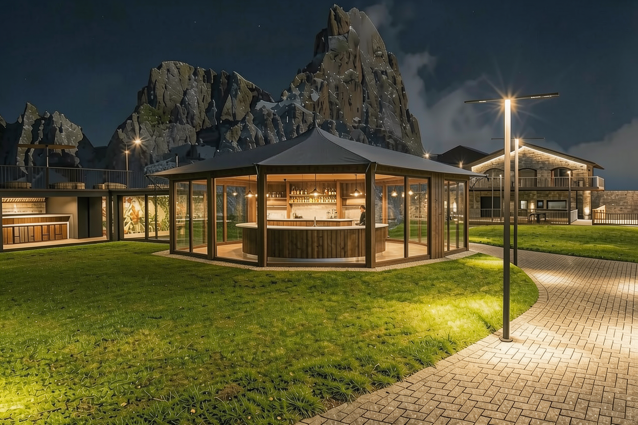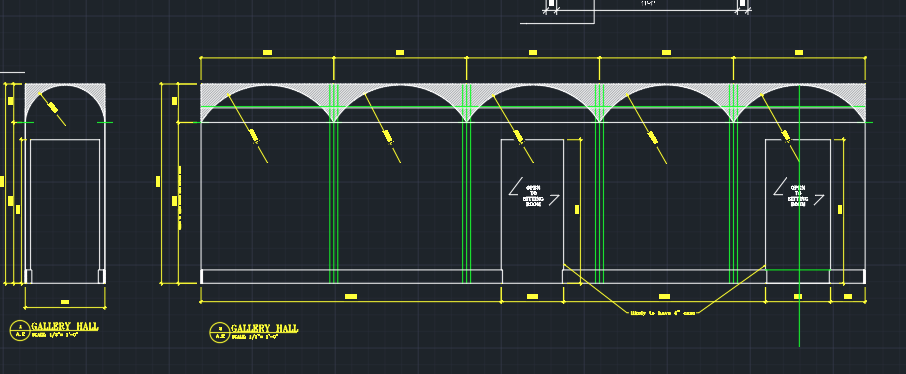 robert a m stern interior shot use the uploaded drawing as dimensional reference do not reinterpret proportions model directly from the provided geometry create a 3d corridor with the following constraints overall corridor length 24 0 clear finished width 5 0 ceiling height 11 0 doors door height 8 0 casing 4 top of casing at 8 4 aff vault geometry create true groin vaults using intersecting half cylinder barrel vaults spring line elevation 8 6 aff vault span 5 0 vault radius 2 6 vault rise 2 6 crown elevation 11 0 aff divide the 24 0 length into 5 equal bays each bay depth 4 9 3 4 generate one barrel vault per bay running longitudinally intersect with perpendicular barrel vaults at each bay centerline to form true groin intersections use boolean intersection geometry not spline approximations ensure vault does not intersect door casing maintain 2 flat wall above casing before spring curve begins groin lines are crisp and symmetrical output accurate 3d model with realistic plaster surface provide one orthographic elevation view and one perspective interior view architecture