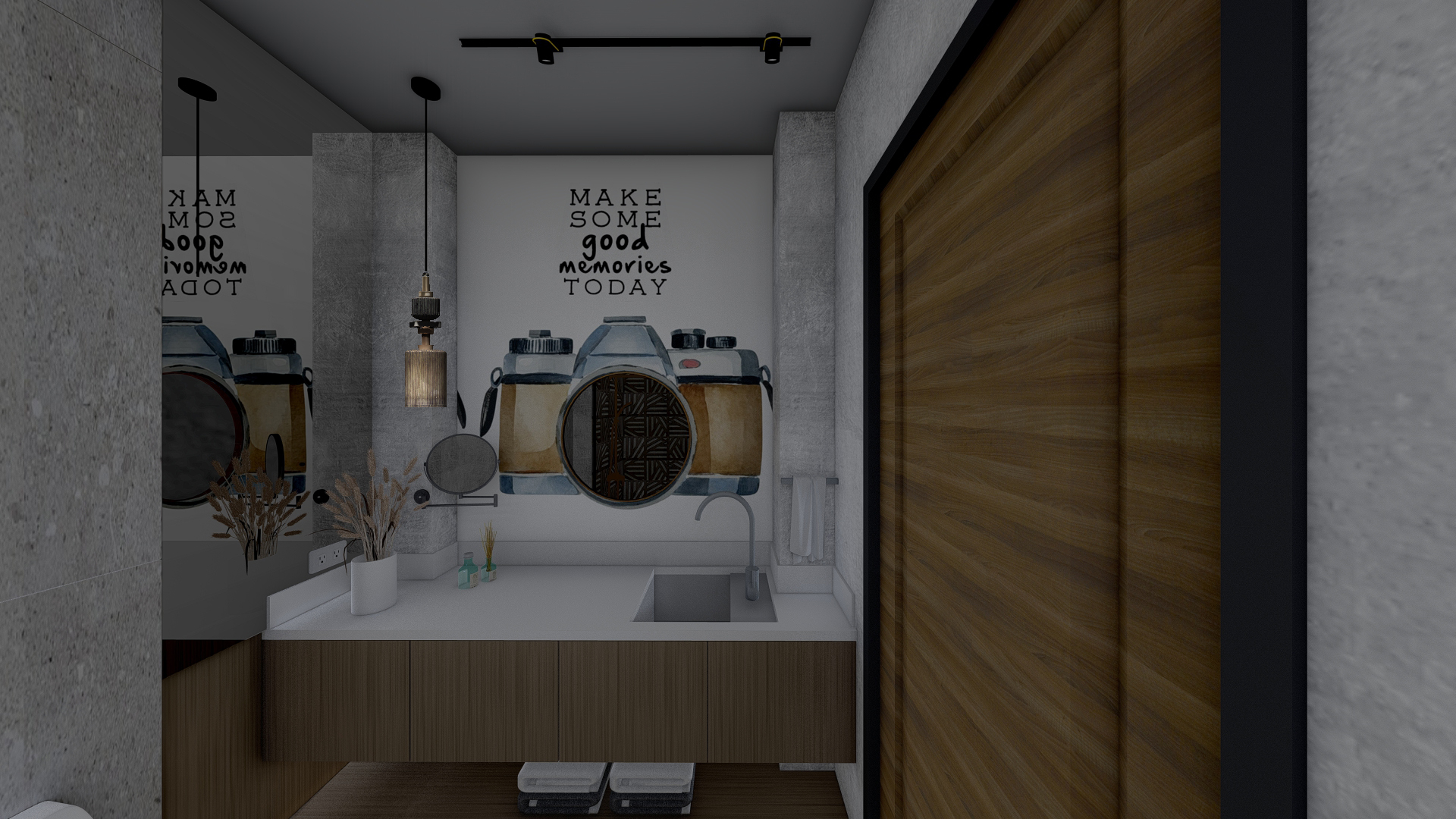 maintain colors and textures interior reflect right the pendant light in the mirror