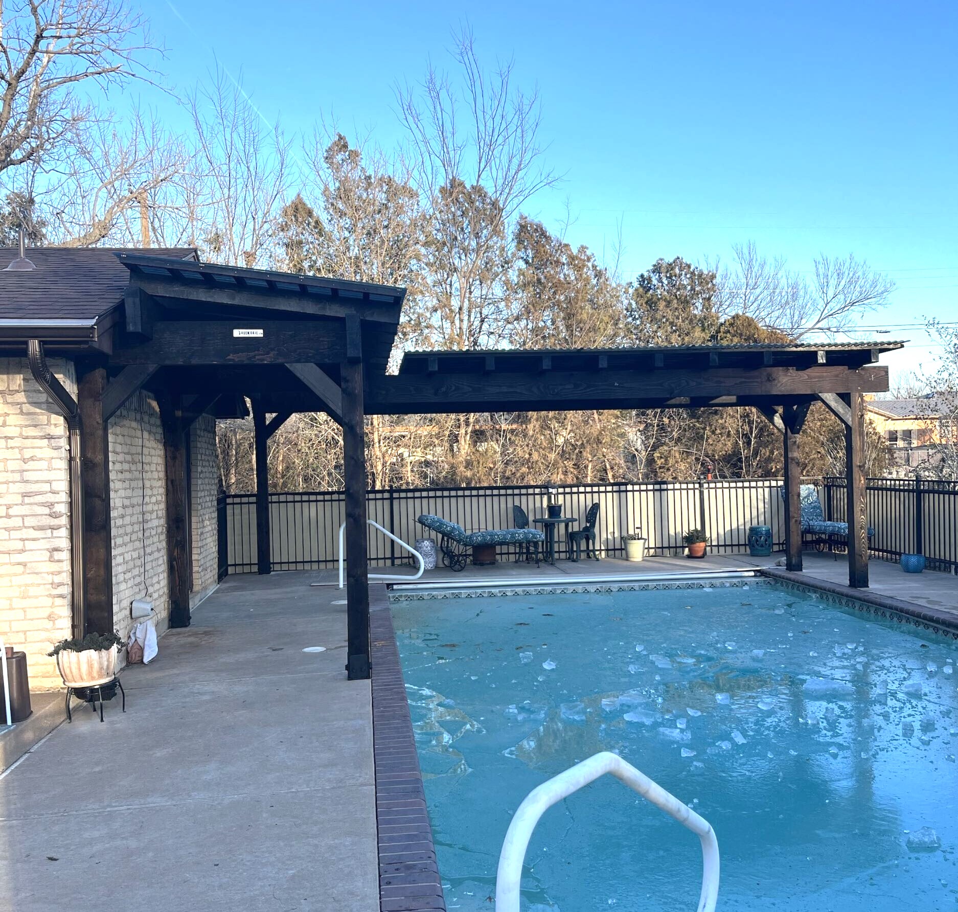 remove white stair handle in the pool area remove ice in the pool and make it water