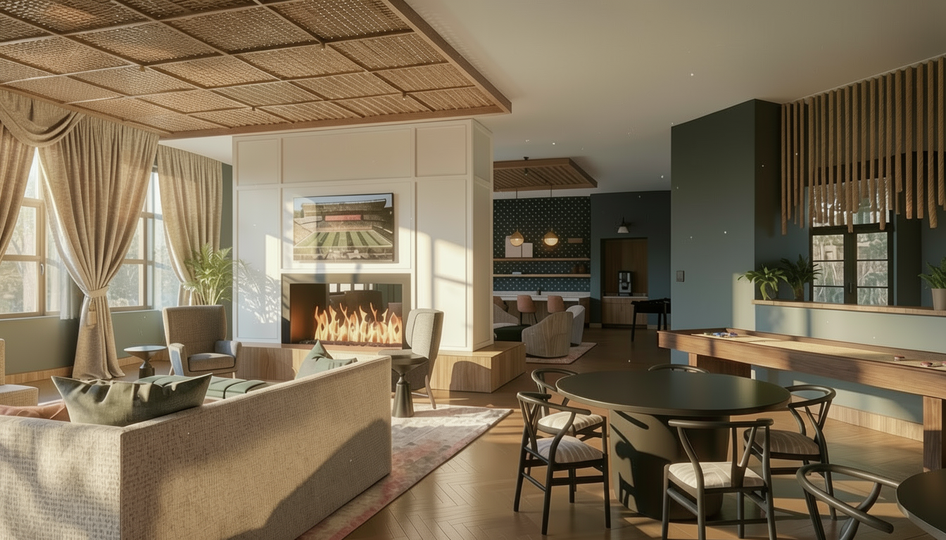 modern nurse station with glass dividers in front of the desk wood paneling sweeps up the wall and overhead the floor is a blonde wood vinyl plank