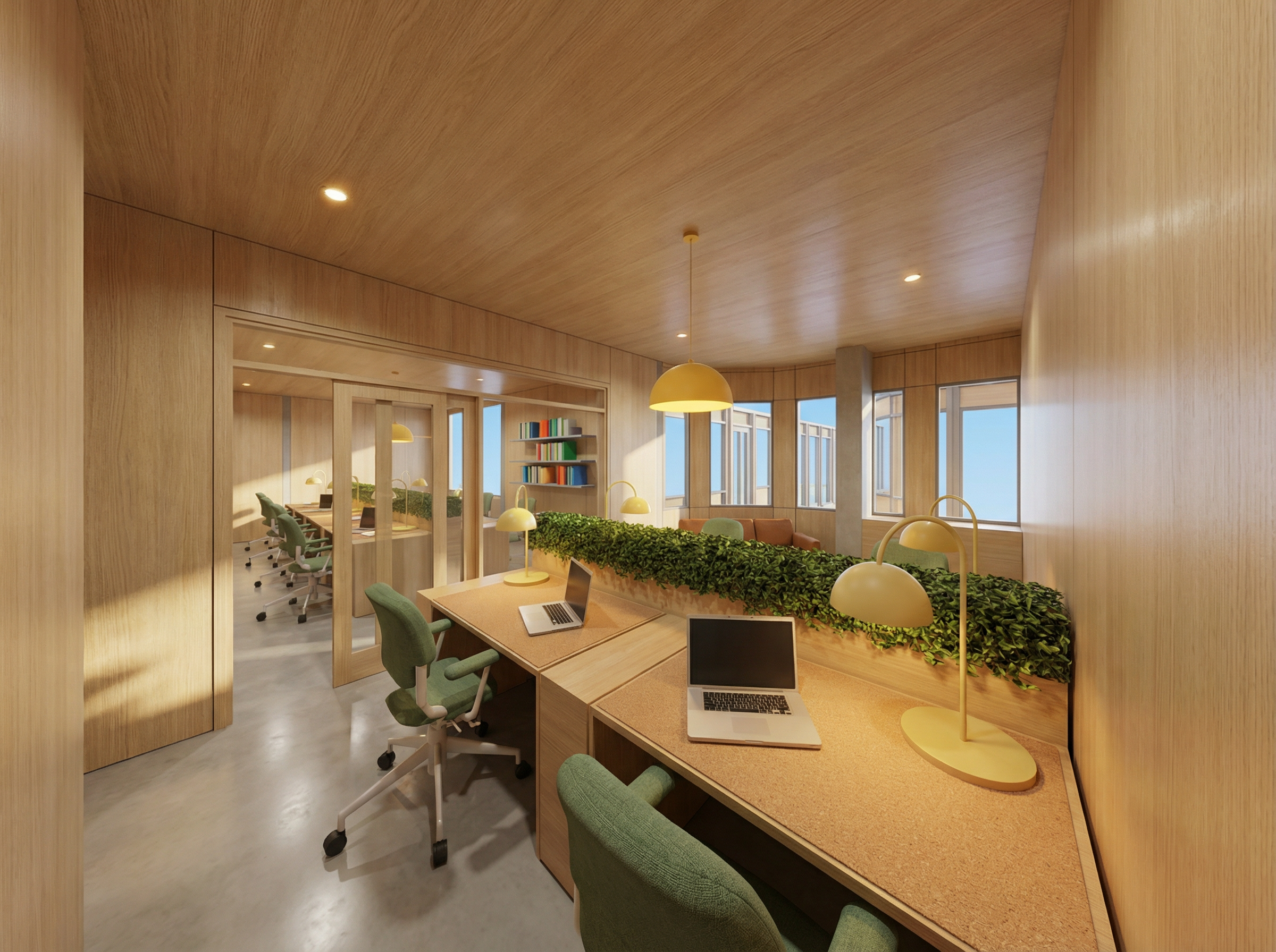 create a photorealistic event setup based on the provided image keep the architecture room proportions and lighting of the original photo unchanged the white frame around the room is the traverse system that should be used for the draping along the wall the stair on the right side will therefore be behind the draping design adjustments all banquet tables are dressed with dark forest green floor length continuous table draping elegant and softly flowing with a high end event styling look install wall draping in a soft light beige fabric along the left wall the short wall the right wall and the front wall the draping should appear modern elegant and slightly textured covering all the walls the stairs and the front we need a modern entrance through the covering draping the poles in the picture should not be seen anymore as the draping is covering them windows must remain visible the beige fabric should be pulled aside and softly fanned to the sides around each window opening to create a modern framing effect rather than covering them each seat should include a silver charger plate silver cutlery wine glasses and water glasses arranged in a refined fine dining setup no florals or centerpieces keep the table styling clean and minimal do not add further tables or anything use the the banquet tables shown in the graphic only style high end event design modern elegance neutral tones with dark green accents soft fabric textures realistic lighting ultra photorealistic rendering professional event photography look cinematic lighting natural shadows realistic fabric folds high detail 8k photorealistic render