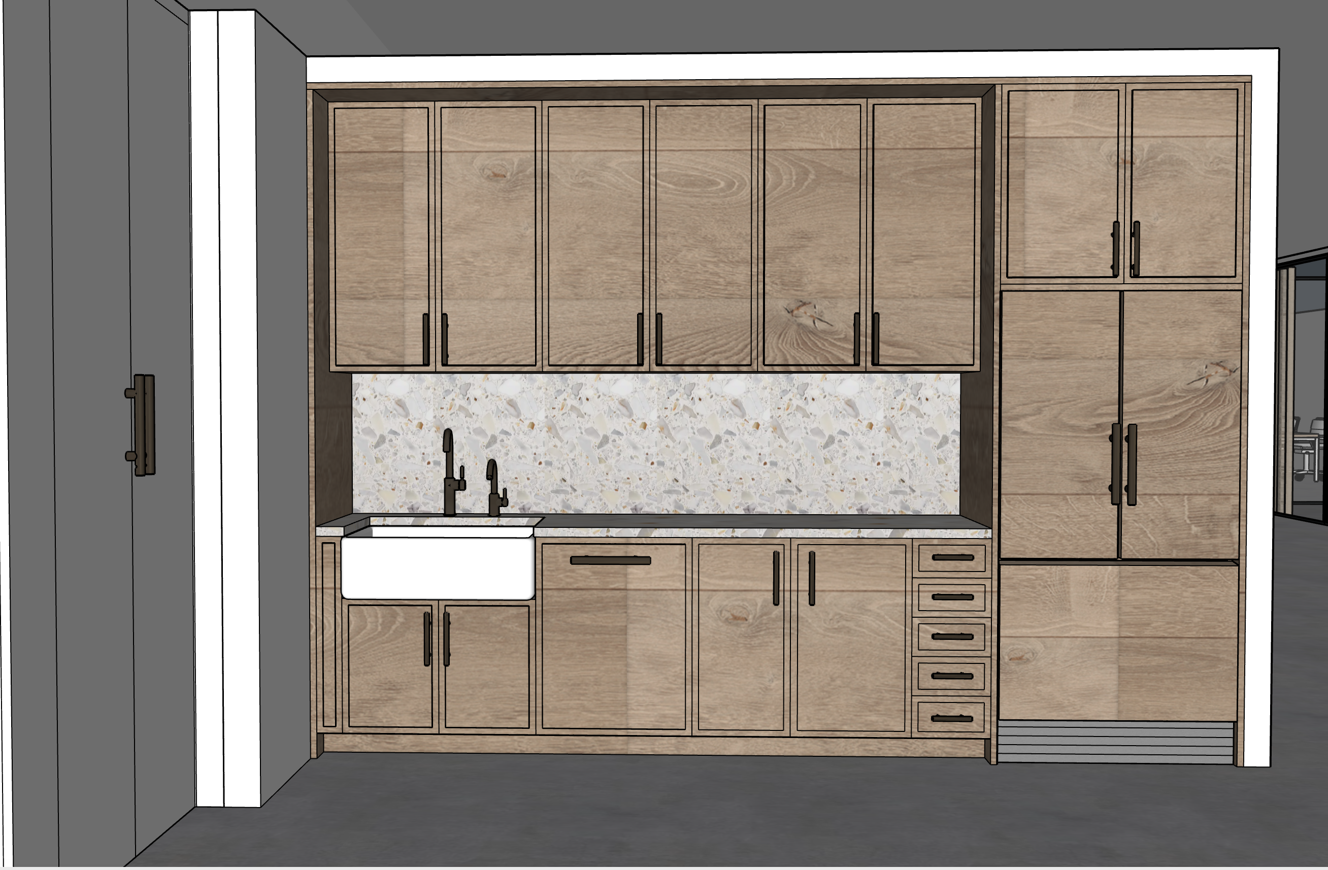 please make the lighting soft even warm and bright keep material as they are shown in the image make the material on the cabinet front white oak make the walls white