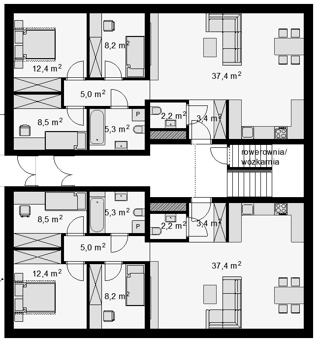 convert this floor plan into a architectural isometric 3d view of a full house show the space from an elevated angle with furniture walls and details visible use the same furniture as shows on the plan do not change the orientation of the floorplan