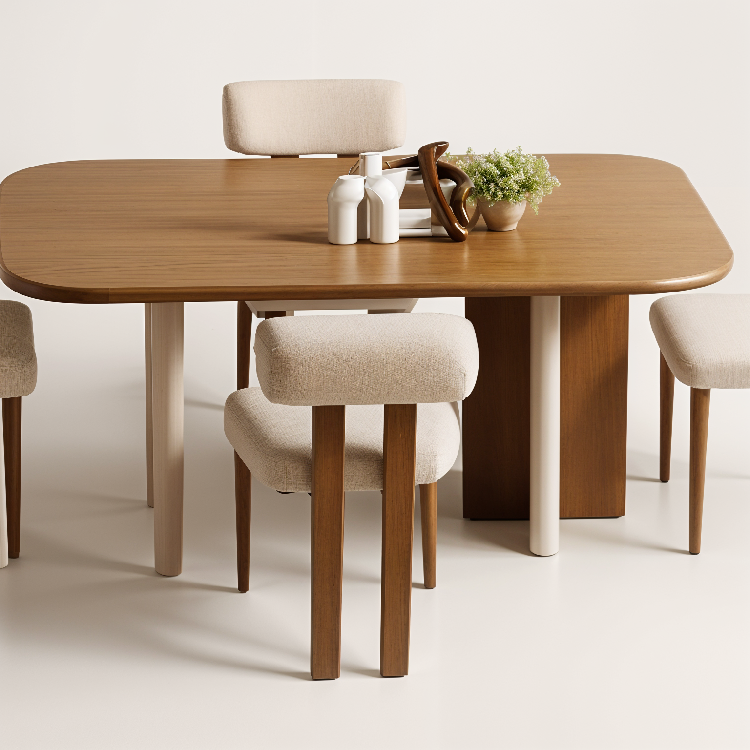 create a photorelalistic image of this modern living room with dark wood floors and white walls large gray sectional sofa facing a flat screen tv mounted on the wall with a low wooden console beneath to the left a wide window with sheer cream curtains lets in natural daylight two smaller windows with light wood frames and sheer curtains on the right side separated by a white column a gray ottoman near the window three leather bar stools at the kitchen island visible on the side ceiling in dark gray bright realistic daylight cozy and contemporary atmosphere