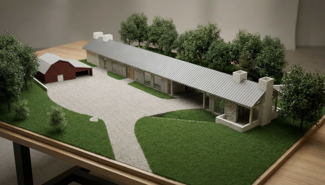 basswood architecture model sitting on a square base even studio lighting