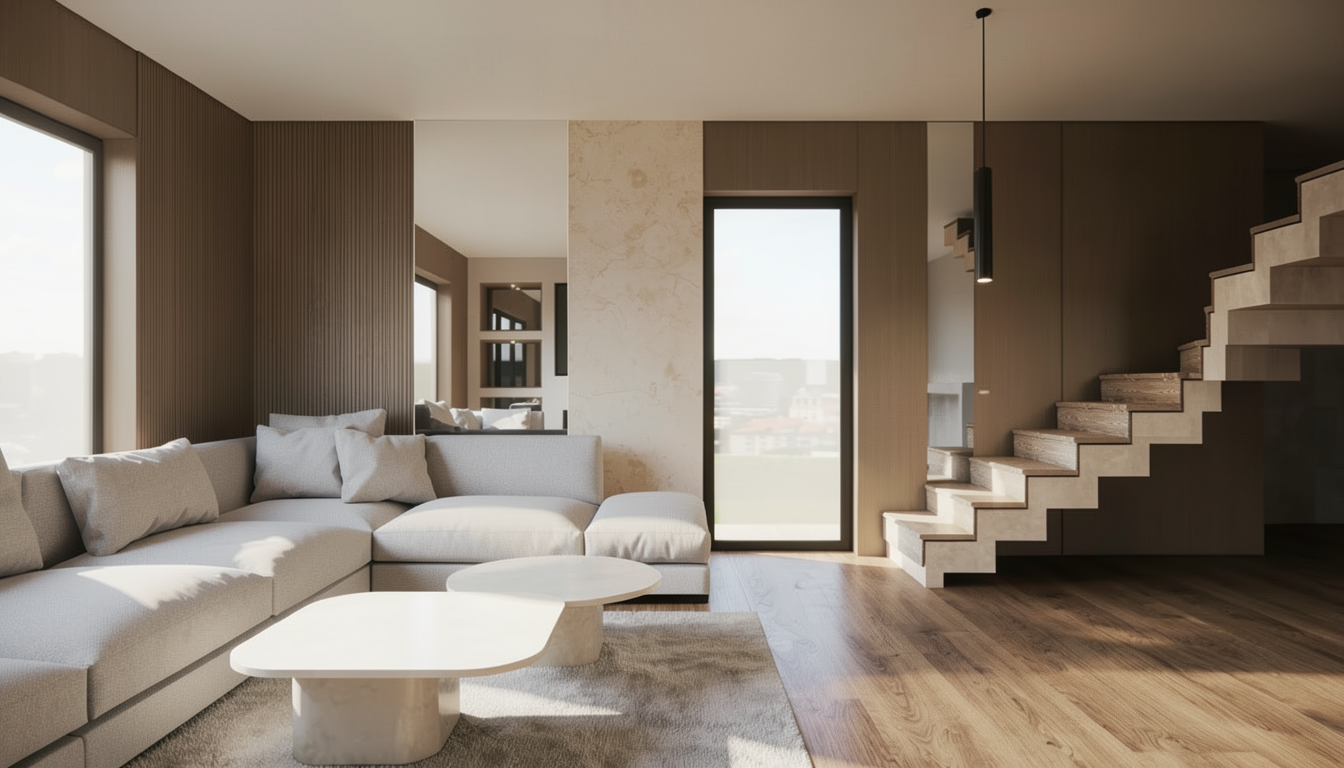 make as photorealistic as possible while keeping textures the same as selection professional landscaping in a lightly wooded scene with good lighting white siding dark shingle roof only