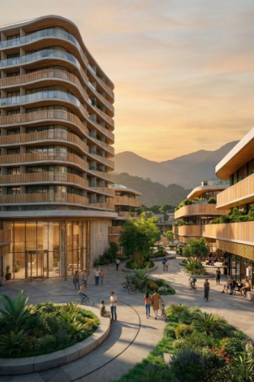 the first uploaded image vista nueva is the only image that defines the scene this image determines all geometry all building shapes the urban layout the camera angle and framing you must not recreate copy or resemble the second image s composition or geometry your task is to enhance and render the scene shown in vista nueva only do not replace it the second uploaded image is a secondary style reference only use it only to guide material realism lighting quality and brightness atmosphere and mood people scale clothing and activity overall render finish do not copy building forms facade layouts street proportions camera angle object placement from the second image if the output resembles the second image more than vista nueva the result is incorrect rendering rules exact geometry lock to vista nueva identical camera and perspective realistic architectural materials applied onto existing surfaces believable lighting consistent with the base image orientation no artistic reinterpretation if geometry is unclear leave it simple rather than inventing detail high resolution architectural visualization