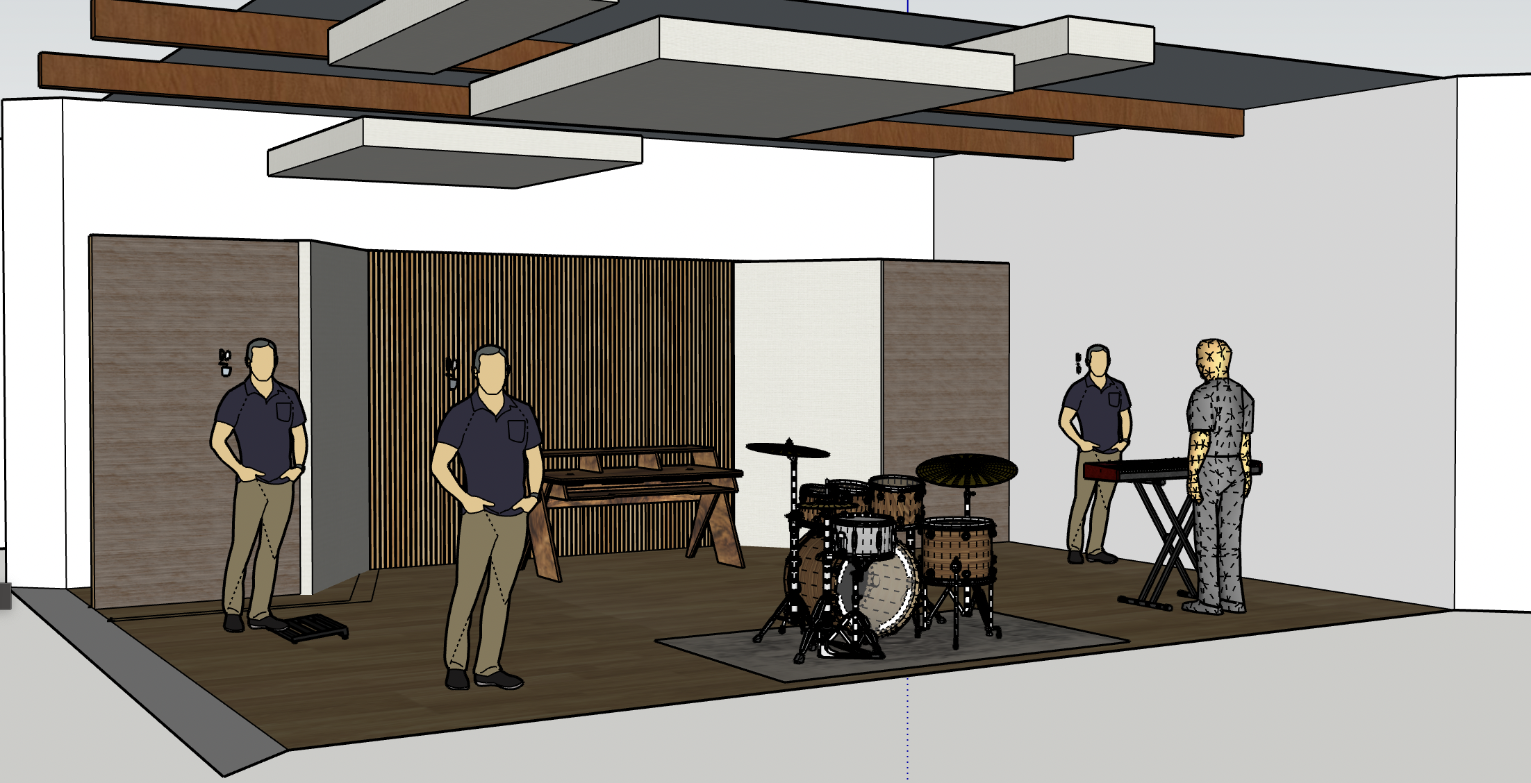 recording studio interior should feel bright with a warm scandenavian feel photo realistic please