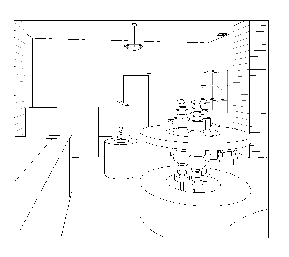 turn this into a real life toy store the circular elements are toy displays the floors are wood make the side wall a light blue and white checker put toys on the smaller cylinders too add toys to the cylinder displays and add white shiplap to the back above the door the back floating shelves are for arts and crafts the left square walls are for a baby space with carpet and built in books the circular elements on the display are white the short walls are for a baby play space and the back right corner is an older kid play space with a small basketball goal