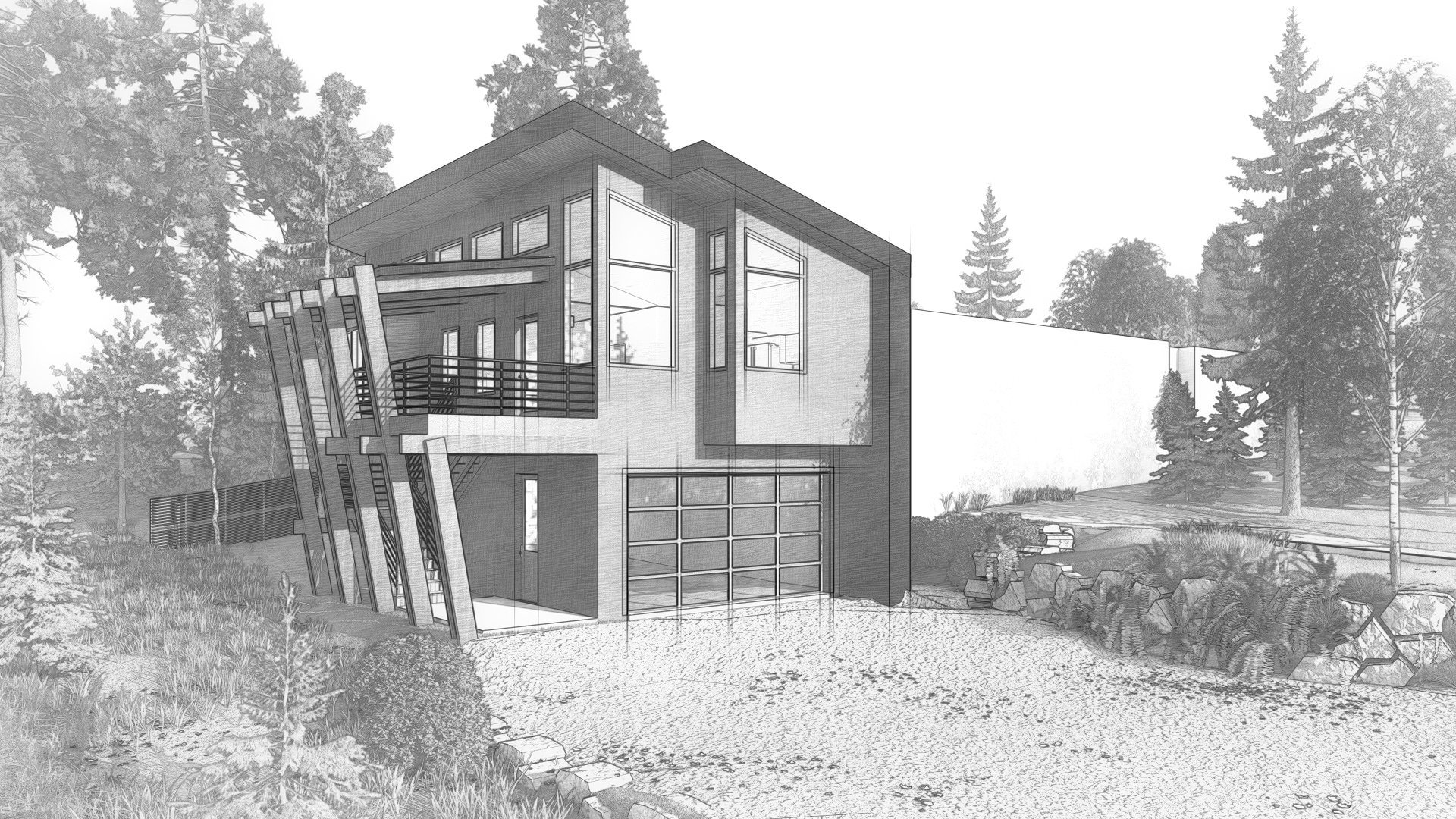 located in bend oregon keep it natural and organic colors clean lines some depth in the sky remove the building to the right replace with landscape less orange in the wood more neutral