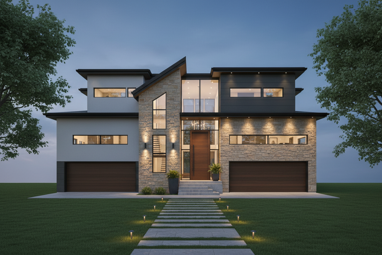 exterior shot keep all of the sizes and scales of the original model maintain garage door sizes and window sizes
