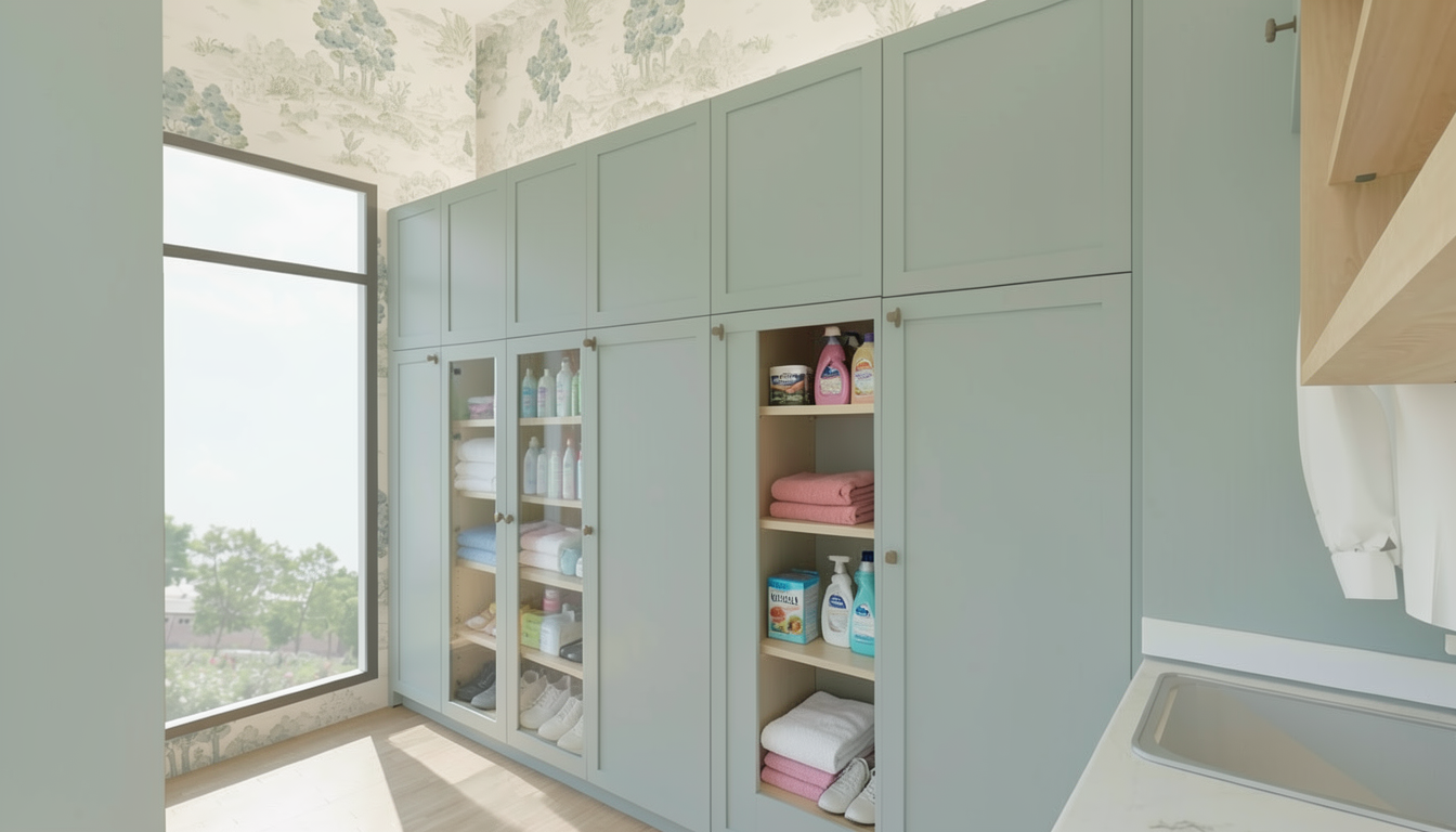 en la quinta puerta contando desde la ventana abre la puerta y a ade estantes interiores con productos de limpiez ay toallas en las segunda y tercera puerta que es puerta de vitrina has a adido productos de limpieza que no quiero quiero zapatos