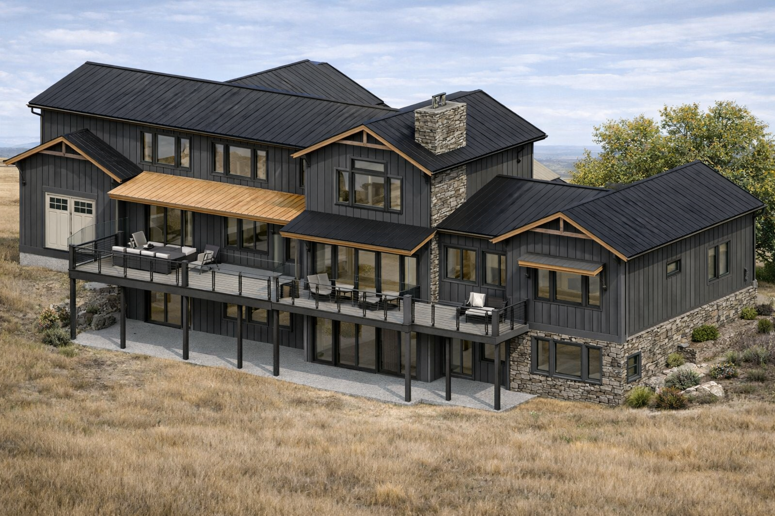 in the photo the left side of the deck will have retaining walls and the back yard will have a wall wrap around in a semi circle to kind of hide the lower level and in it will be a putting green