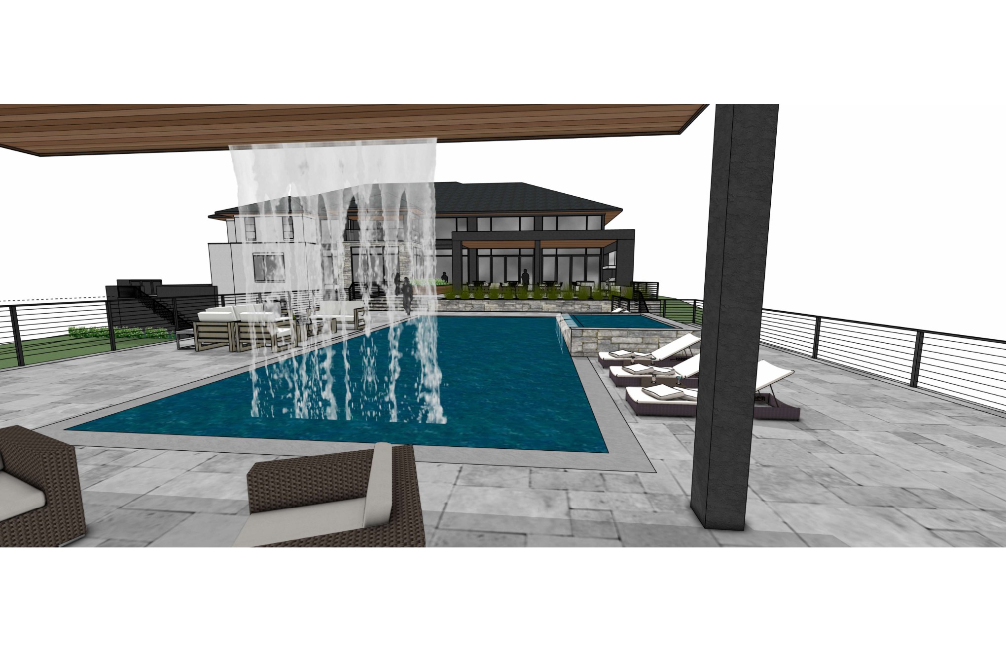 add more realistic materials landscaping vegetation and place building within a suburban environment with light vegetation throughout the distance