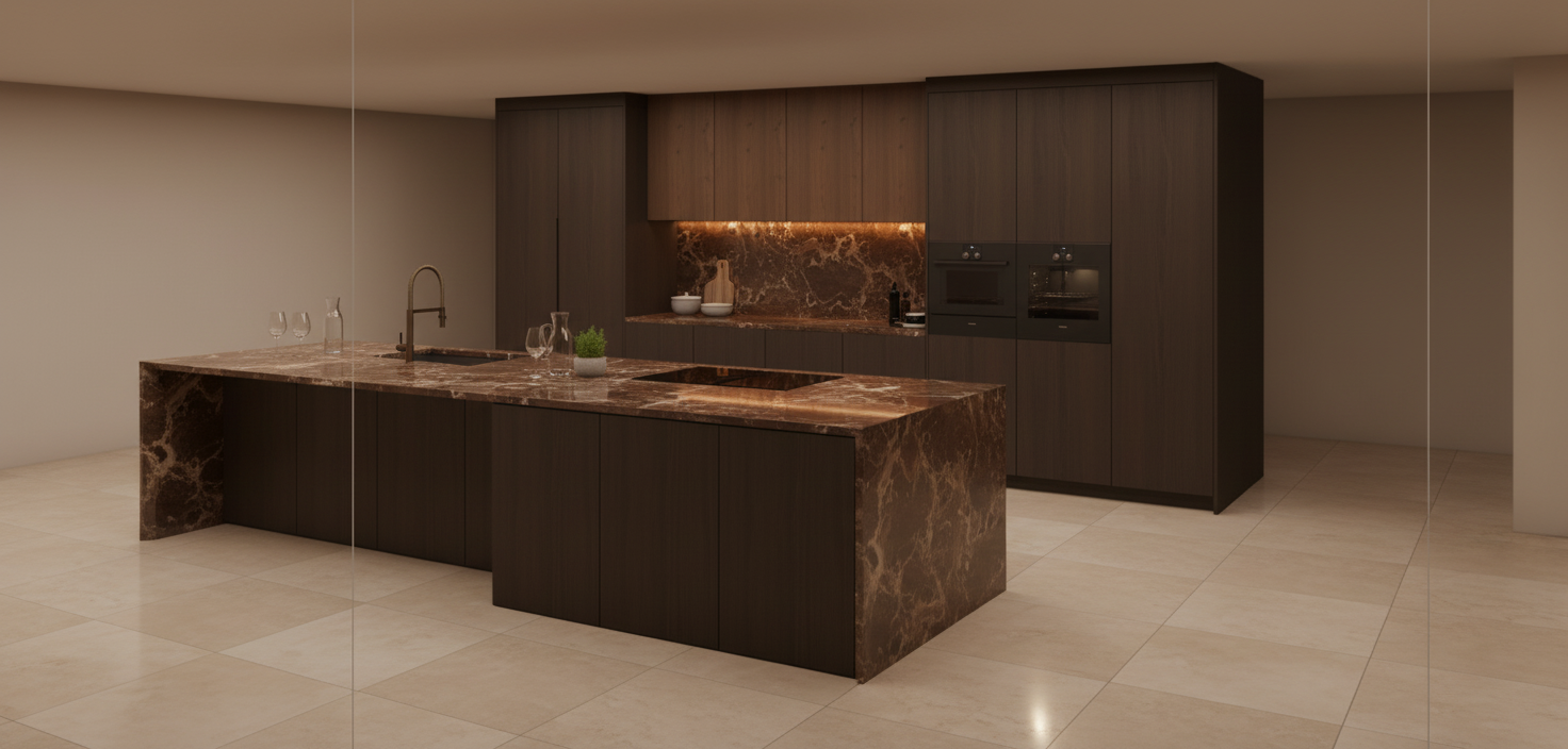 ignore the two lines in the front change the cabinets from the backcomposition to a uni warm brown taupe the hanging cabinets from the backcomposition have to be the same wood as the island ad a long lamp over the island who is spending warm light add some bar chairs in the nische of the island and some art on the walls