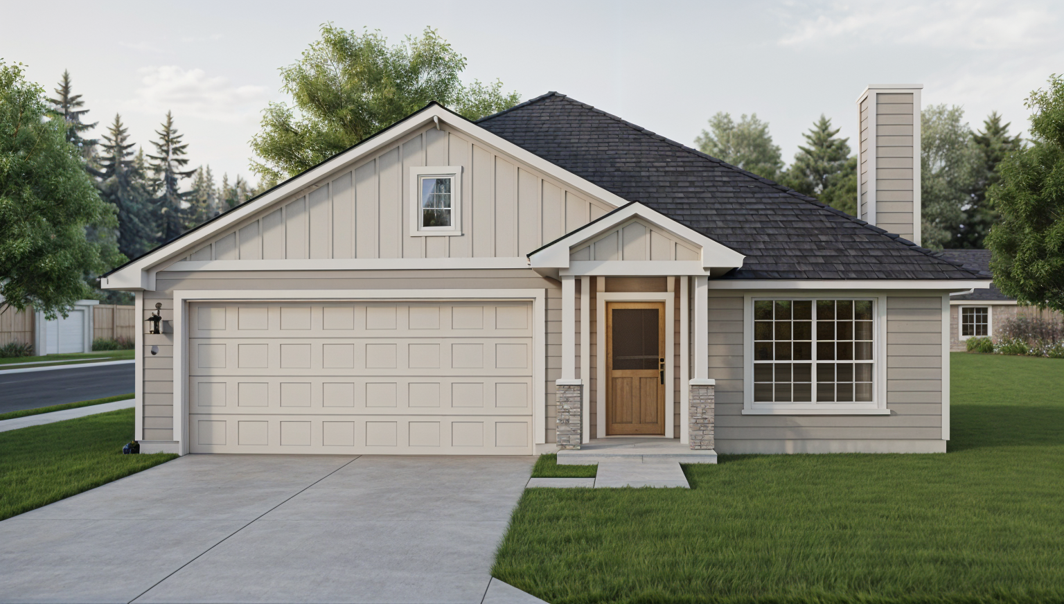 neighborhood style neutral colors brick and stone only no chimney a little darker roof