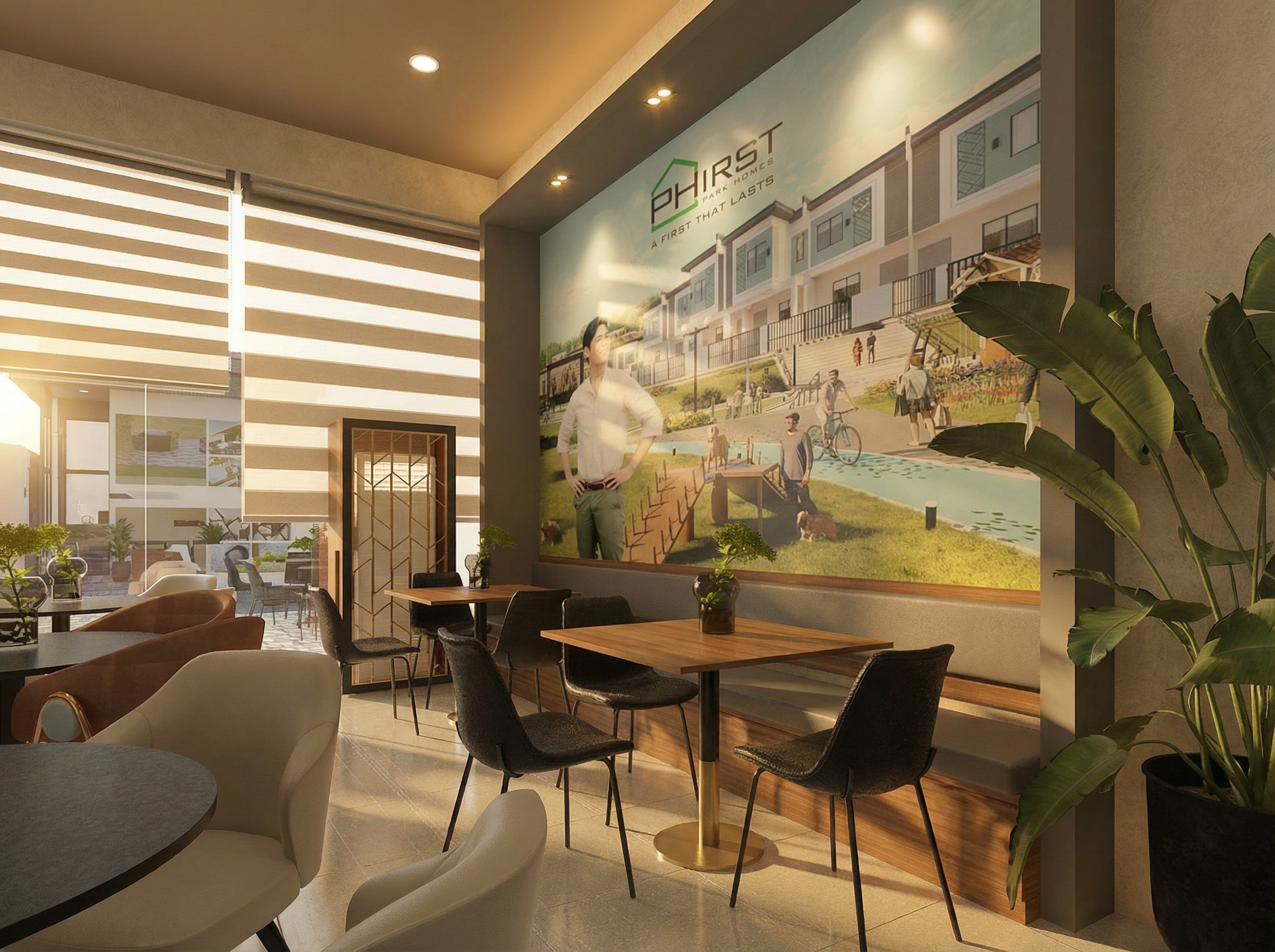 add patio outside the window add sunlight glow from window add ceiling light glow maintain all other colors