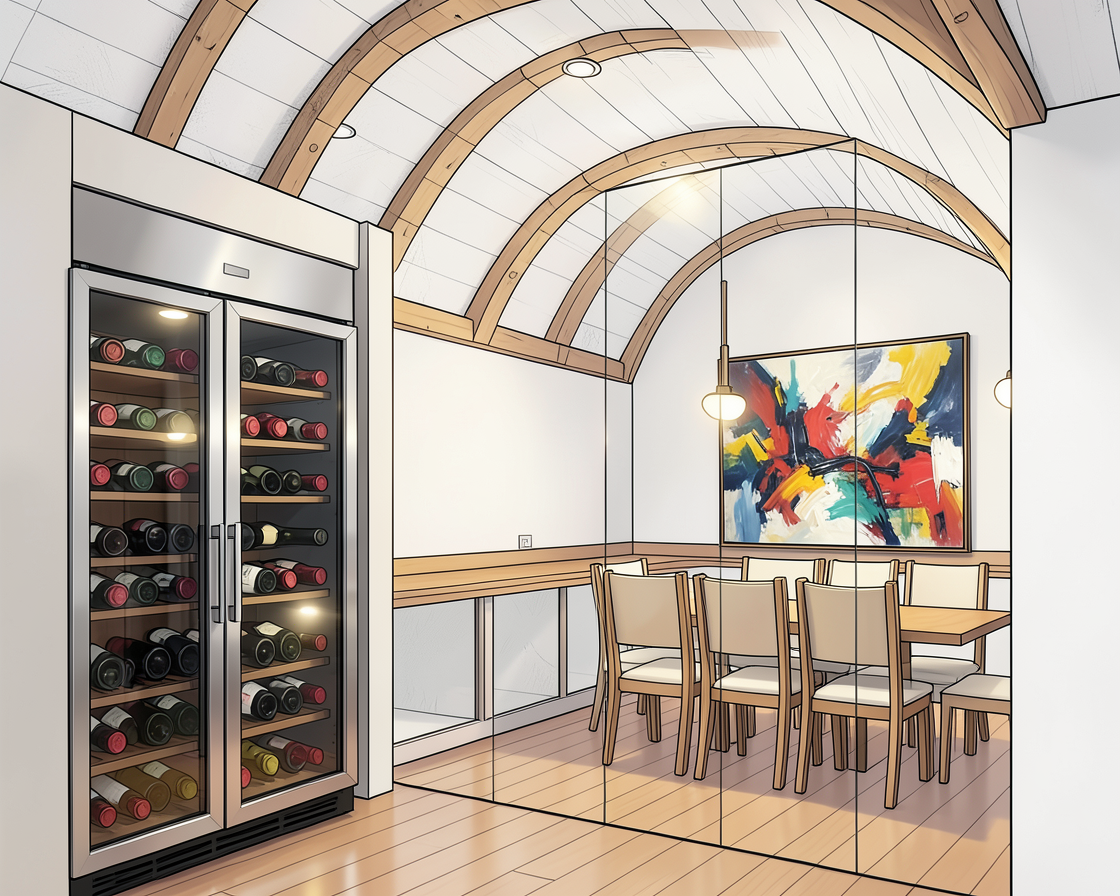 clean modern architectural exterior rendered in cinematic bright golden hour lighting mountain modern architectural style dark siding beautifully manicured landscape around structure with hedges and gardens black standing seam metal roof visible prominent cinematic valley landscape in the background with the house on the top of the hill high fidelity photorealistic visualization crisp shadow falloff refined facade geometry soft atmospheric depth premium architectural photography mood ultra clean composition and materials vibrant sunset warm wood trusses inifinity pool on the back of the house