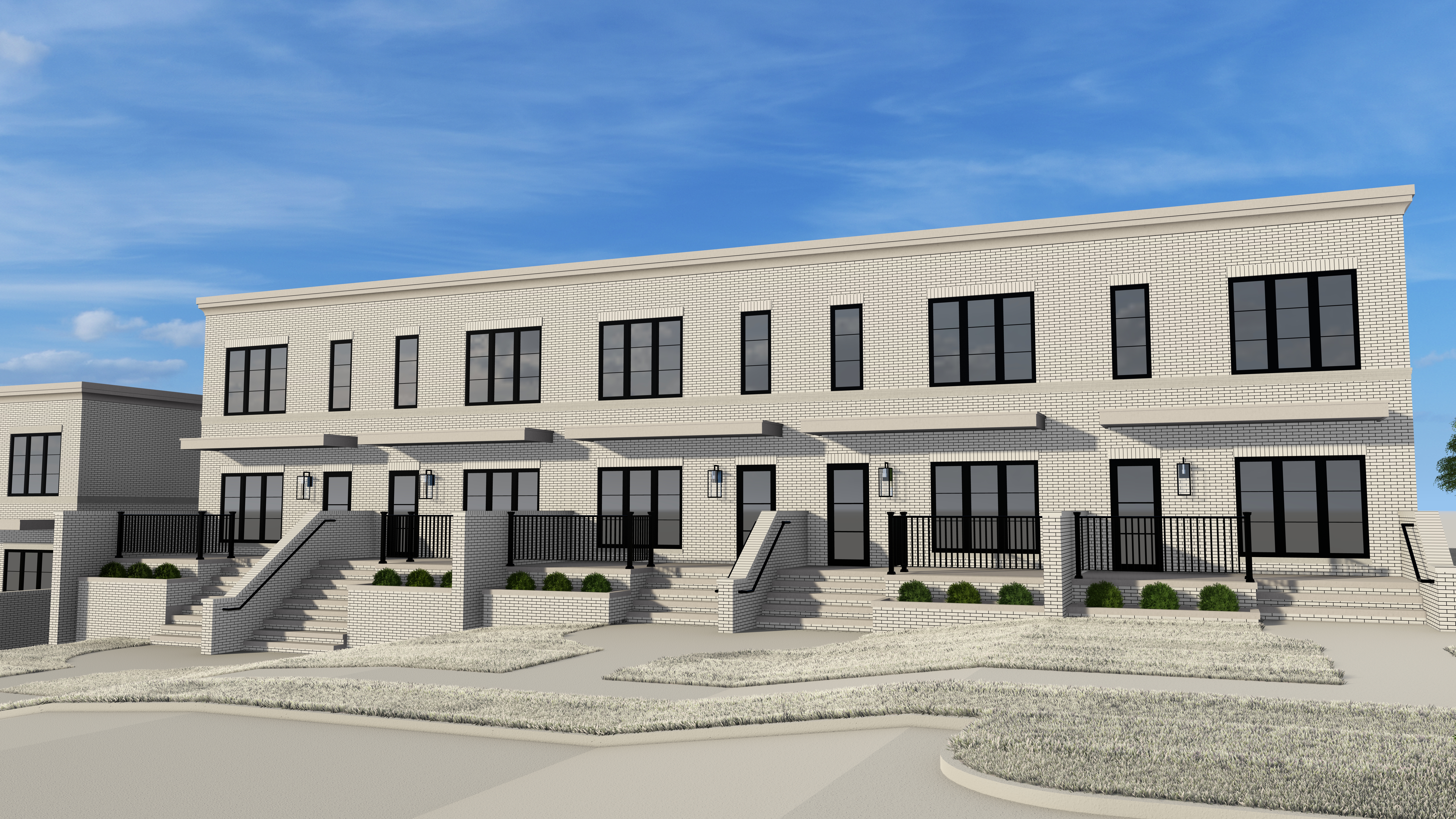 cloudy sky manicured grass asphalt road