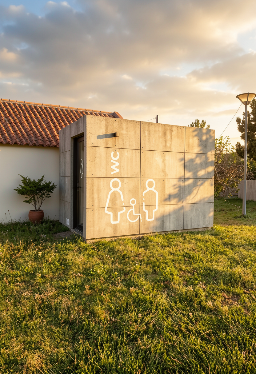 colocar a bancada em alinhamento com um campo e que a parte de tras do contentor tenha calcada