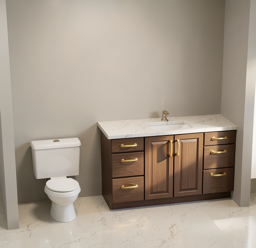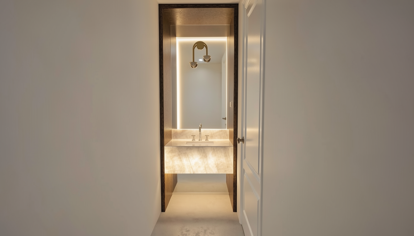 under light the countertop and make it semi translucent to add a glow effect to the countertop no other lighting