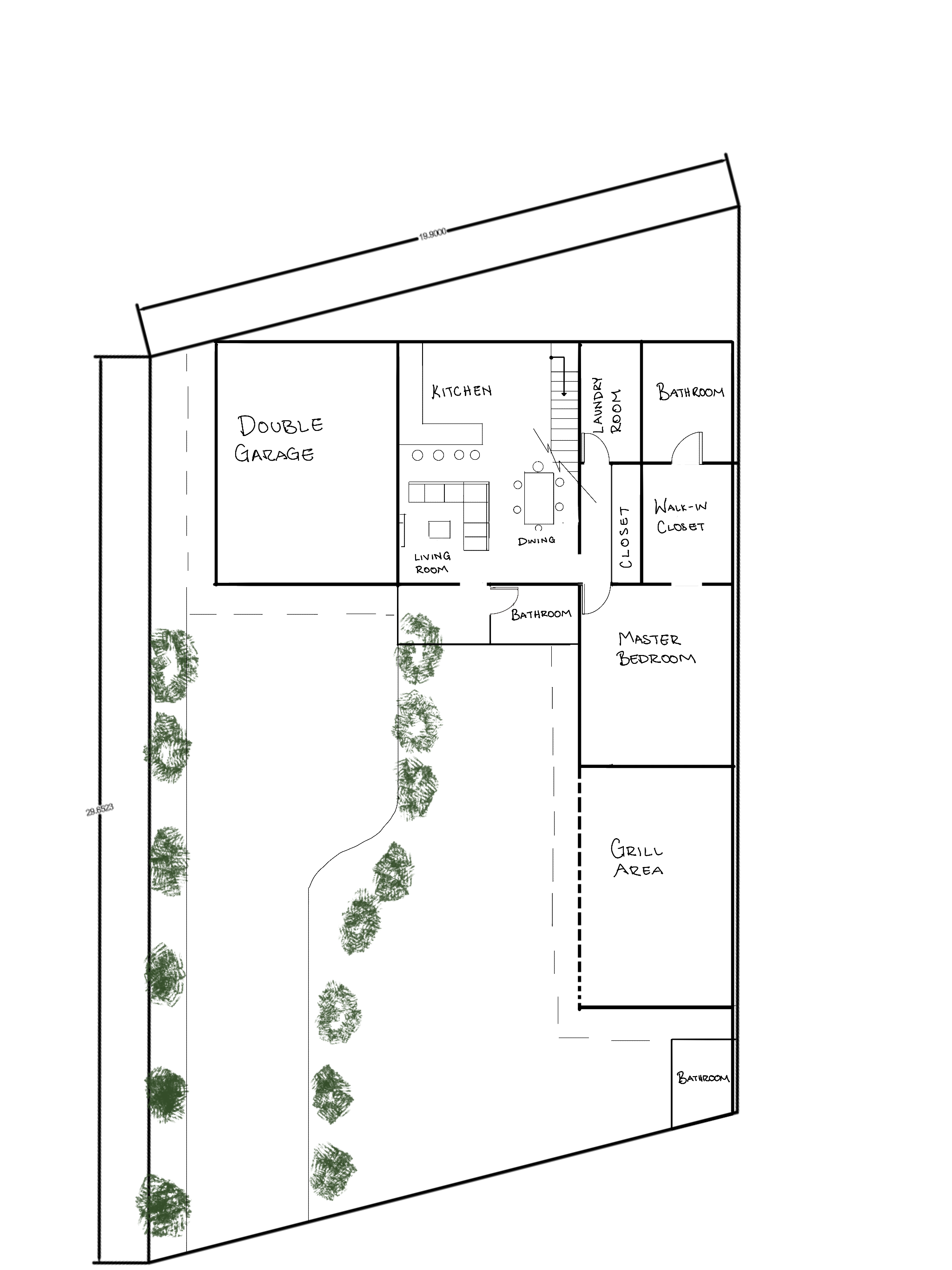 you are given a hand drawn sketched or informal floor plan possibly uneven lines pencil pen or a photo of a sketch recreate it as a polished client ready 2d architectural floor plan requirements preserve layout room count adjacency door and window locations and overall proportions as faithfully as possible do not invent major new rooms or change circulation unless the sketch is unreadable in that case minimally clarify output is strictly top down 2d plan view not isometric not perspective crisp linework consistent wall thickness standard architectural symbols for doors and windows where visible clean white or very light background subtle gray fills optional for readability remove sketch noise smudges shadows paper texture and photo artifacts optional readable room labels where they help the client keep typography simple and professional no decorative 3d no photorealistic rendering this should look like a professional plan sheet suitable for a client meeting